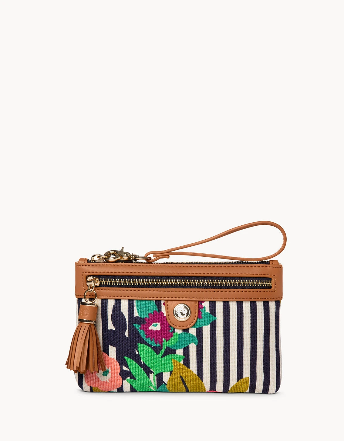Get ready for the compliments when you step out with our Spartina sassy Tassel Wristlet. Genuine leather strap, tassel and accents in contrasting colors make this functional wristlet an eye catching fashion accessory!