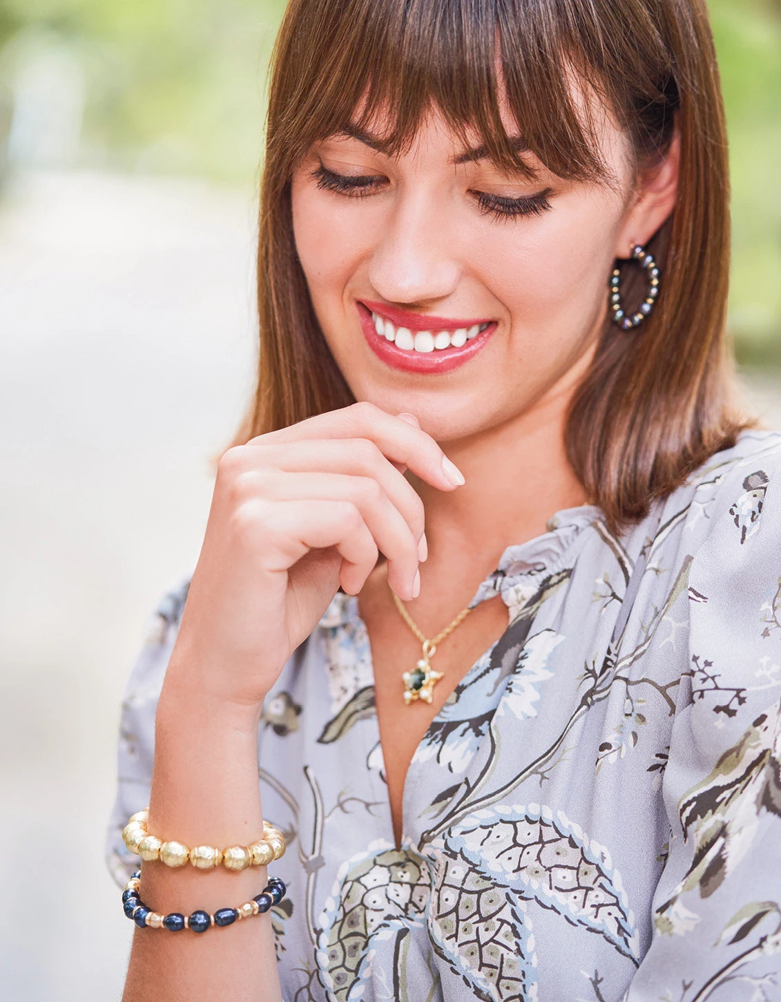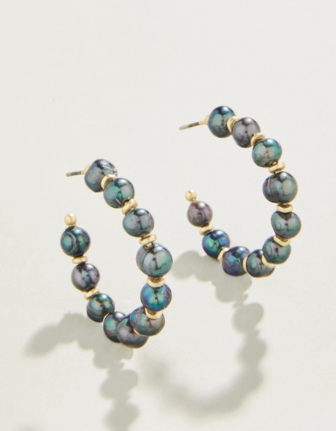 Your jewelry collection is not complete without these timeless Annabelle Beaded Hoop Earrings in 18kt matte gold plating and grey freshwater pearls.