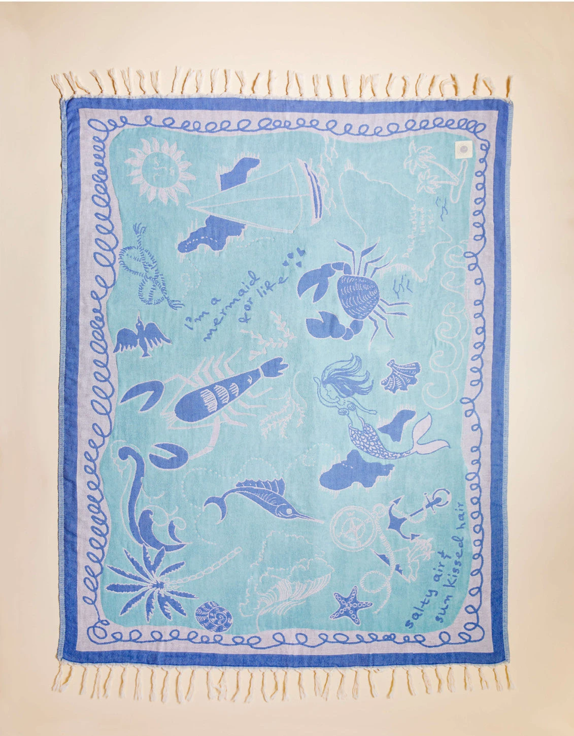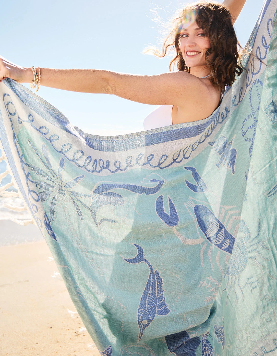 Wrap up in this beautiful woven jacquard blanket edged in fluffy tassels. Perfect for beach picnics, boat rides and porch swings. Made of 100% Turkish cotton, this blankets is durable and will only get softer over time. It dries quick and sand shakes right off. Beach days have never felt so good.