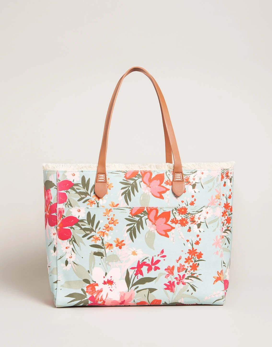 When it comes to totes, our splash-proof, stain resistant, laminated cotton Alljoy Landing Sea Foam Beach Tote topped with fringe is tote-ally sweet. This roomy bag with faux leather straps holds everything – and then some! – including the quick-get items in its convenient backside pocket. Best of all, It’s made from durable cotton with a coated base that can stand up (literally!) to day after day of splashy fun.