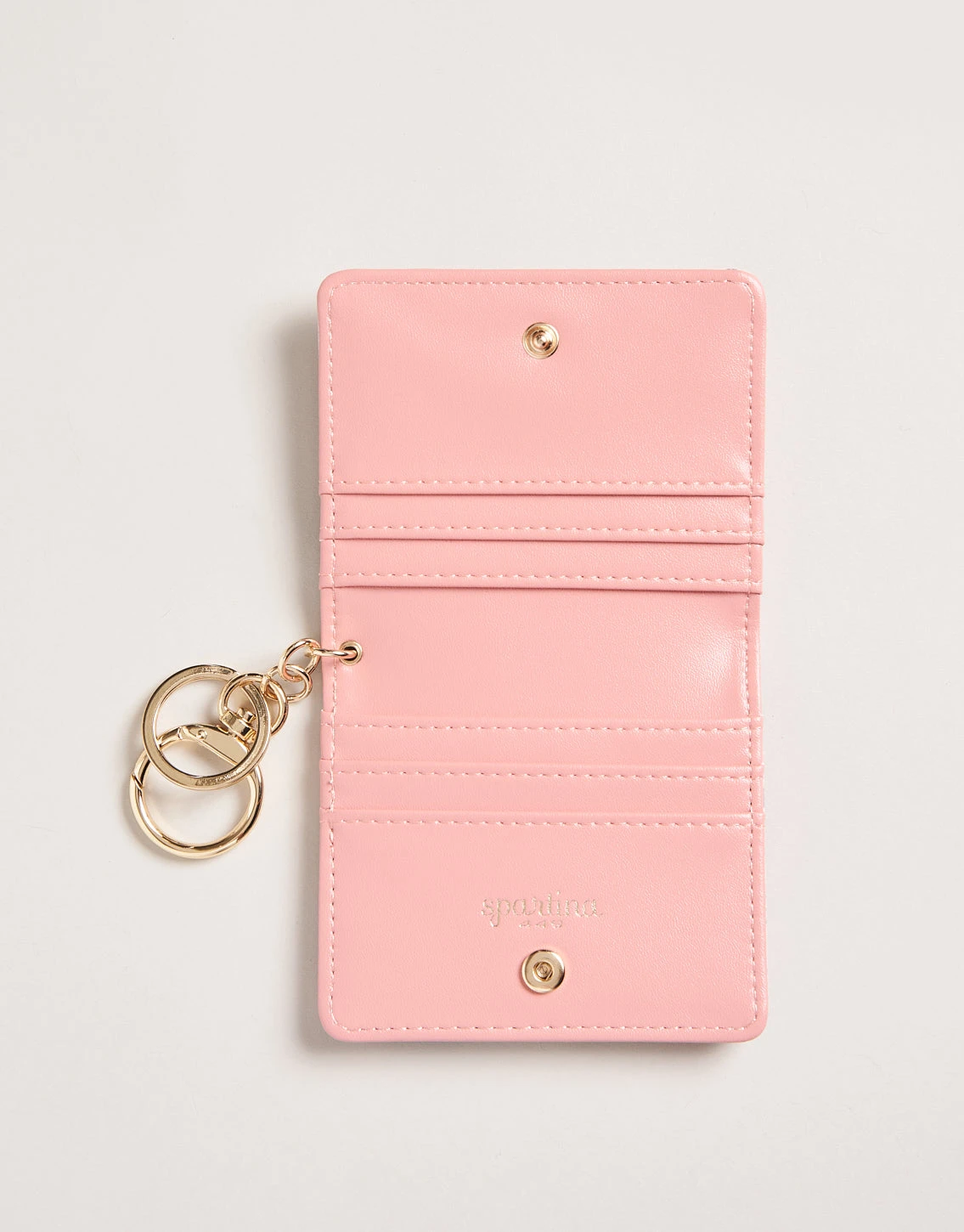 Keys & cards? There’s no better way to keep them together than with this simply chic cardholder a la keychain. Open the magnetic snap closure for access to 6 card slots. Designed with a printed floral vinyl, this little lovely is a utilitarian powerhouse.