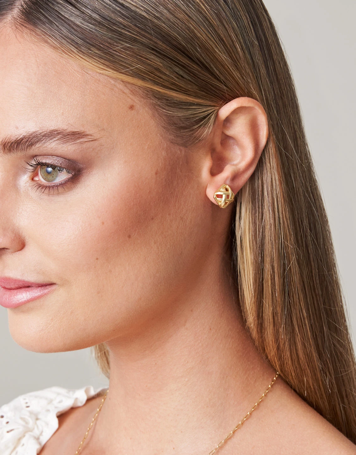 A cane pattern is woven together in Matte 18kt Gold Plating in our Cane Stud Earrings.