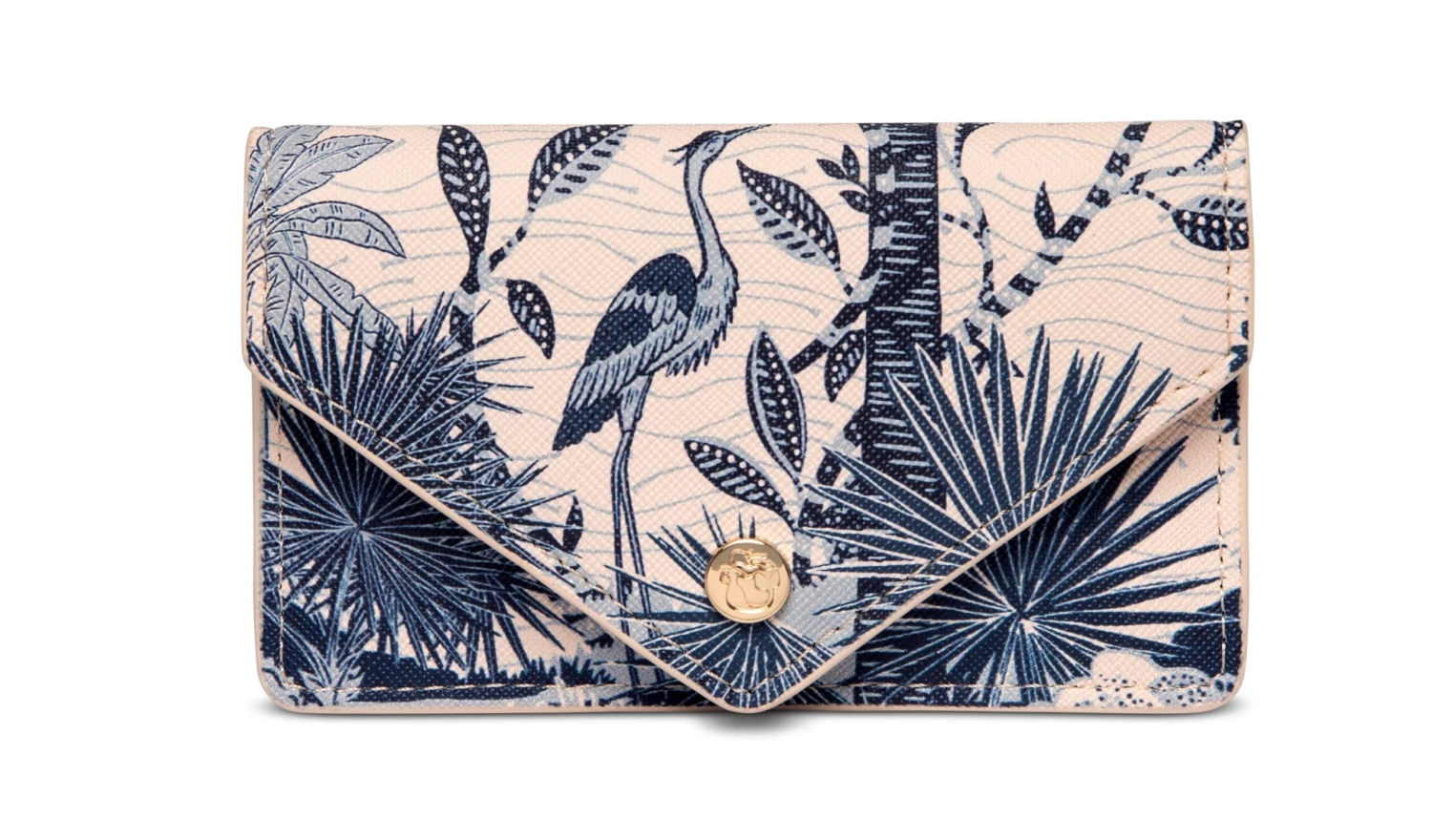 Petite & discrete, our Card Holder keeps your cards looking posh in this printed vinyl envelope carrier, featuring two card slots and a back slip pocket to stash cash.