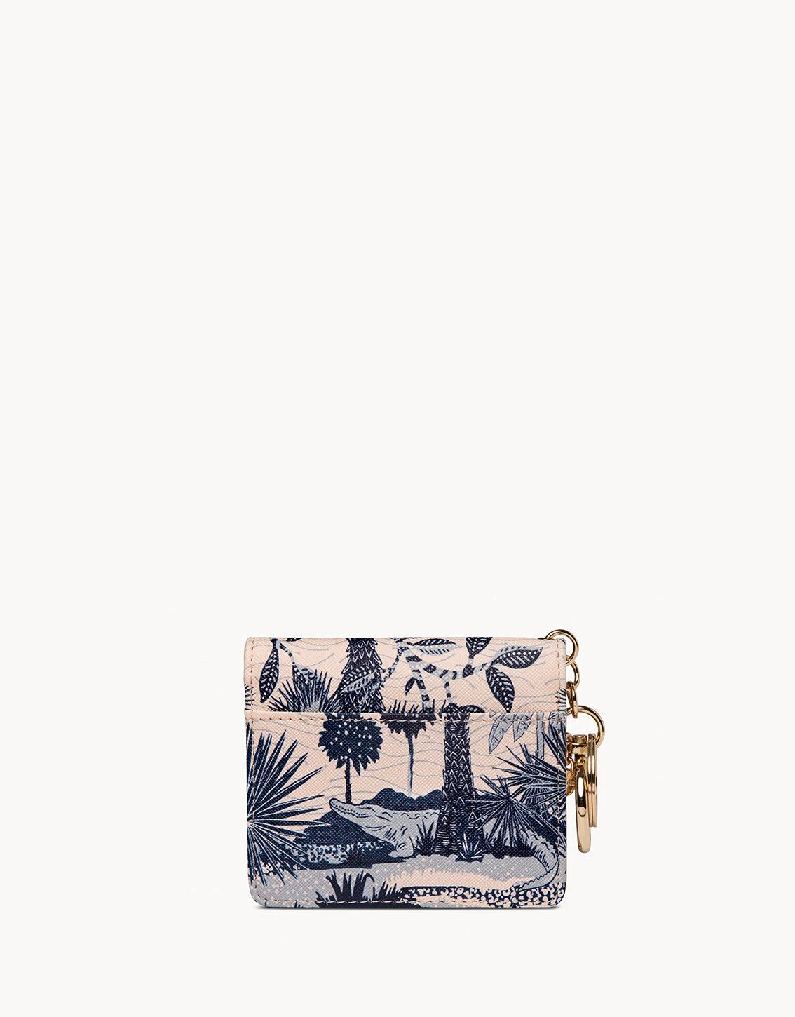 Keys & cards? There’s no better way to keep them together than with this simply chic cardholder a la keychain. Open the magnetic snap closure for access to 6 card slots. Designed with a printed vinyl, this little lovely is a utilitarian powerhouse.