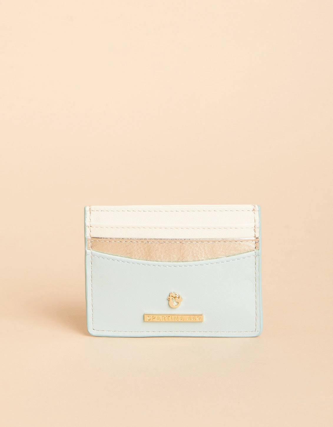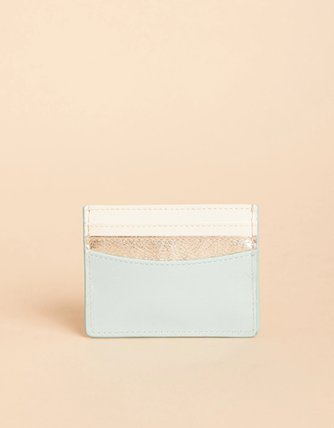Slim and stylish, this cardholder is made slip into your tote. Made in a sea glass color block, luxurious top grain leather with napa leather accents and featuring 7 RFID protected card pockets, our Cardholder is ready for anything.