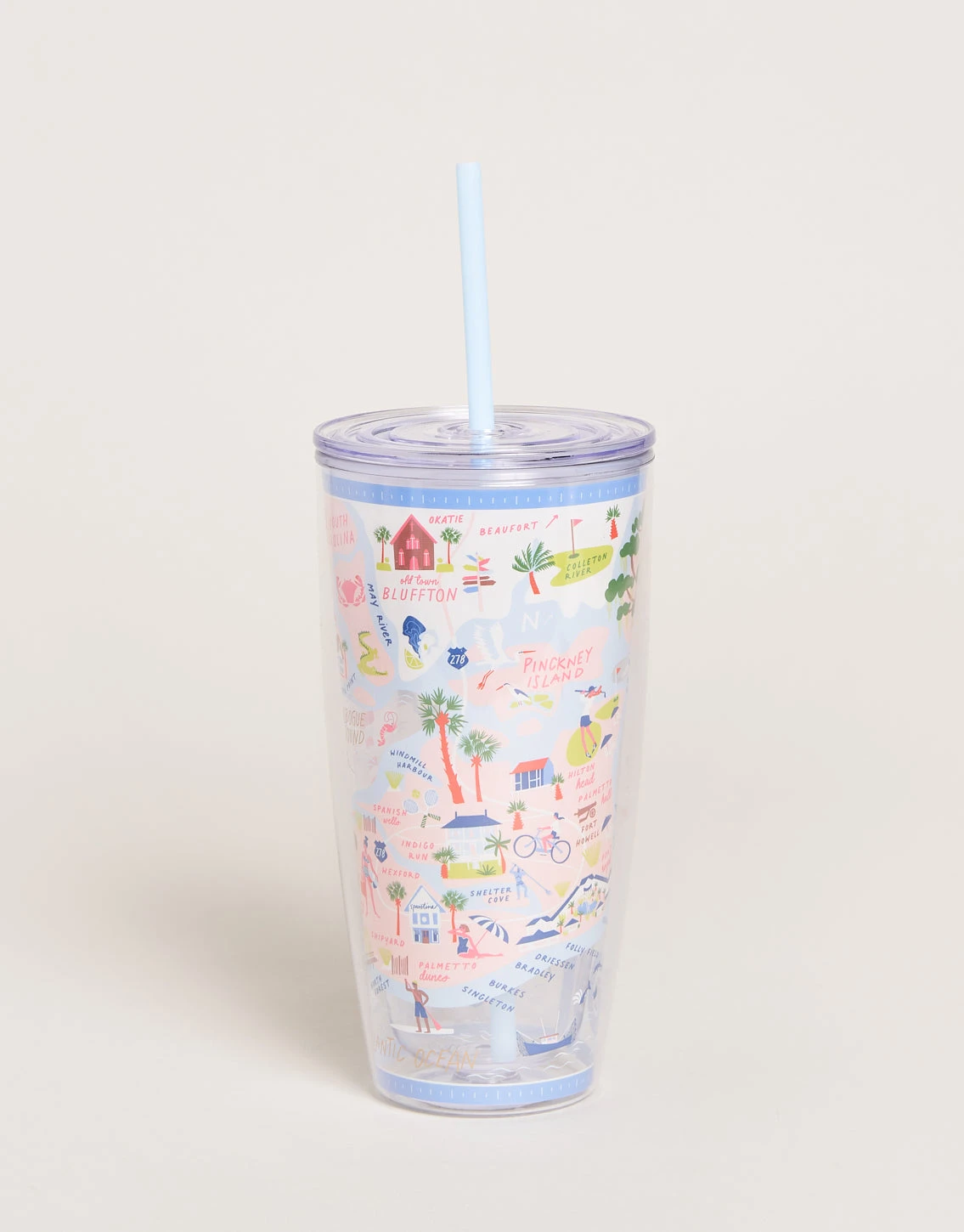 Take in the sunshine while your drink stays cool in our vacuum insulated, acrylic, Clear Drink Tumbler! This 24 oz. Hilton Head illustrated map cup will be your best friend on beach days, pool days, work days… let’s just say every day! Features a clear lid and comes with a colorful reusable straw. Keeps cold drinks cold. Not recommended for hot drinks.