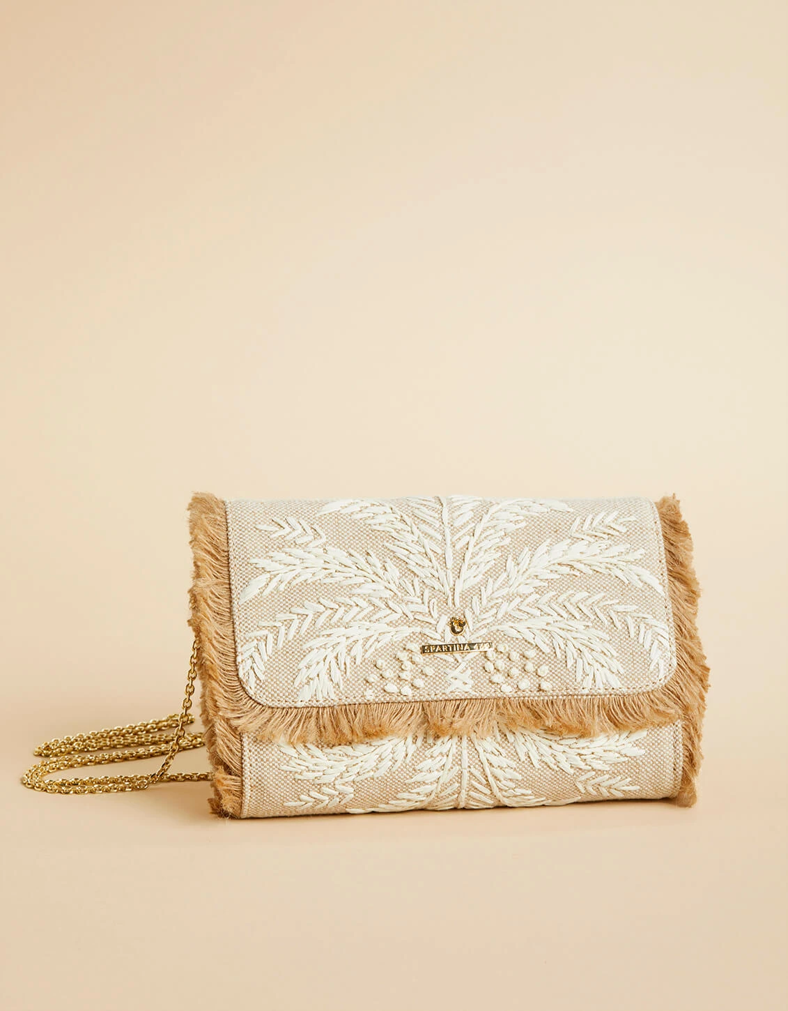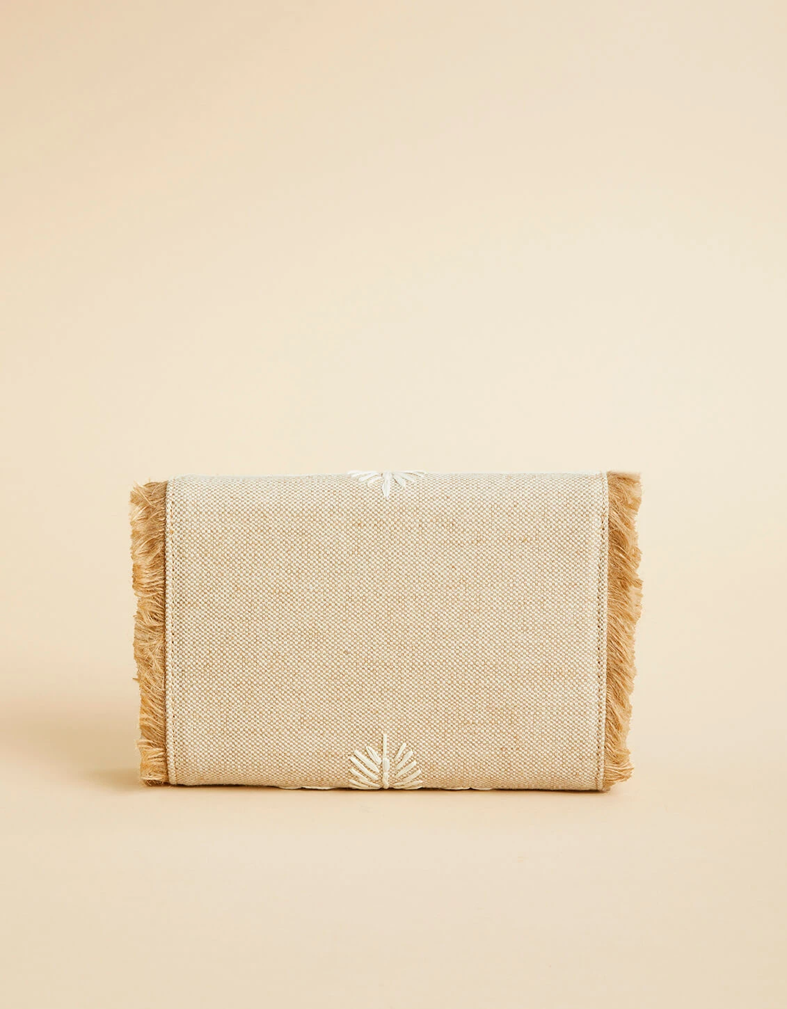 So sublimely detailed and altogether lovely, our Clutch Crossbody – with its embroidery and fringe border – puts pretty in the palm of your hand as a fingertip clutch or hands-free crossbody.