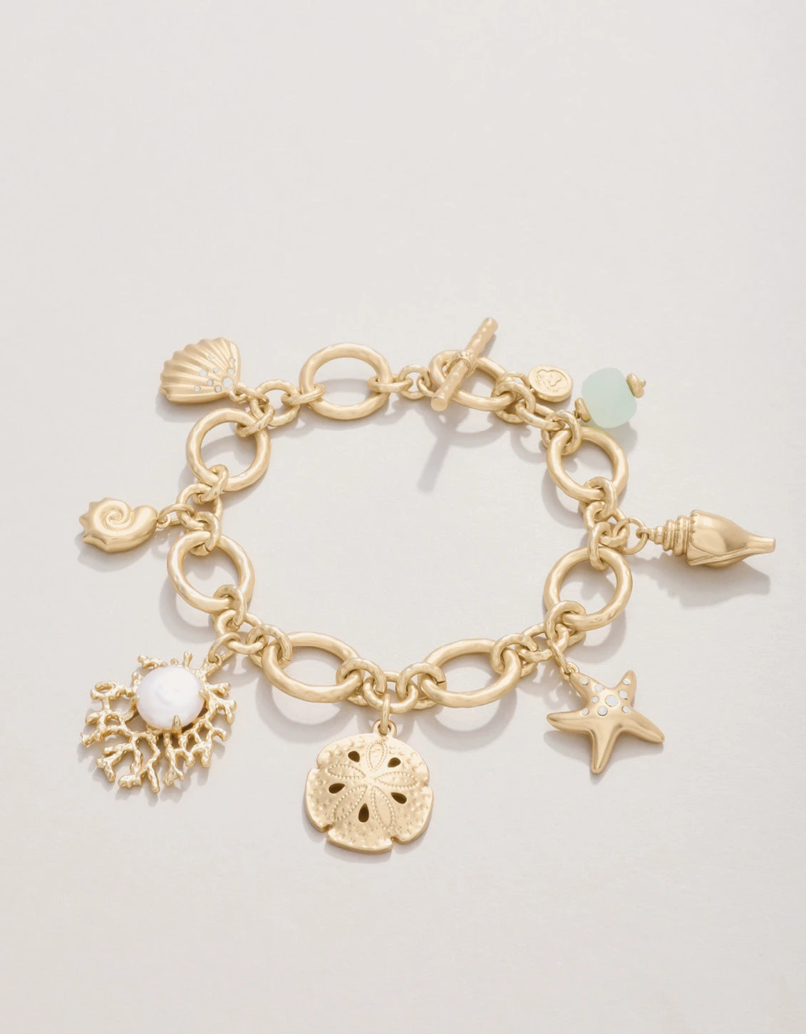 Inspired by a love for all things sea life, our Coastal Dreams Charm Toggle Bracelet features 7 charms on a chain bracelet plated in 18kt matte gold. It’s literally the bracelet of your “coastal dreams,” no matter how far from the beach you are!