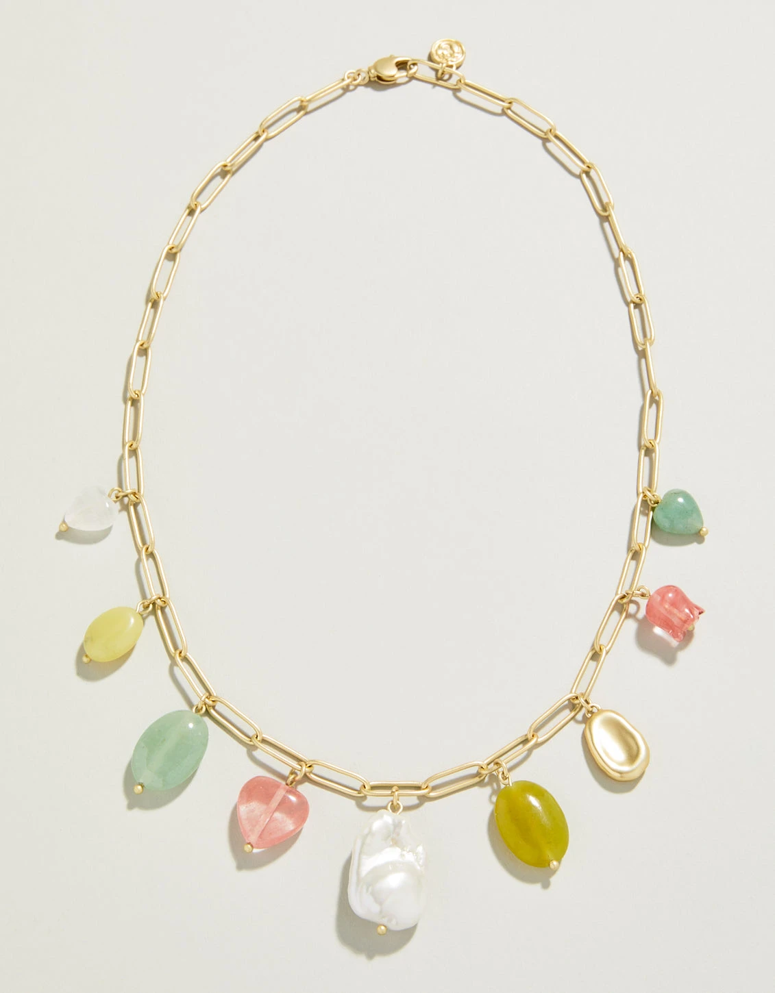 Pretty in pearls and oh-so lovely in natural pastel stones, our Cotton Candy Necklace is as sweet as you. Please note: This design features natural stones and each piece is one-of-a-kind. Colors and patterns may vary slightly from the image shown.