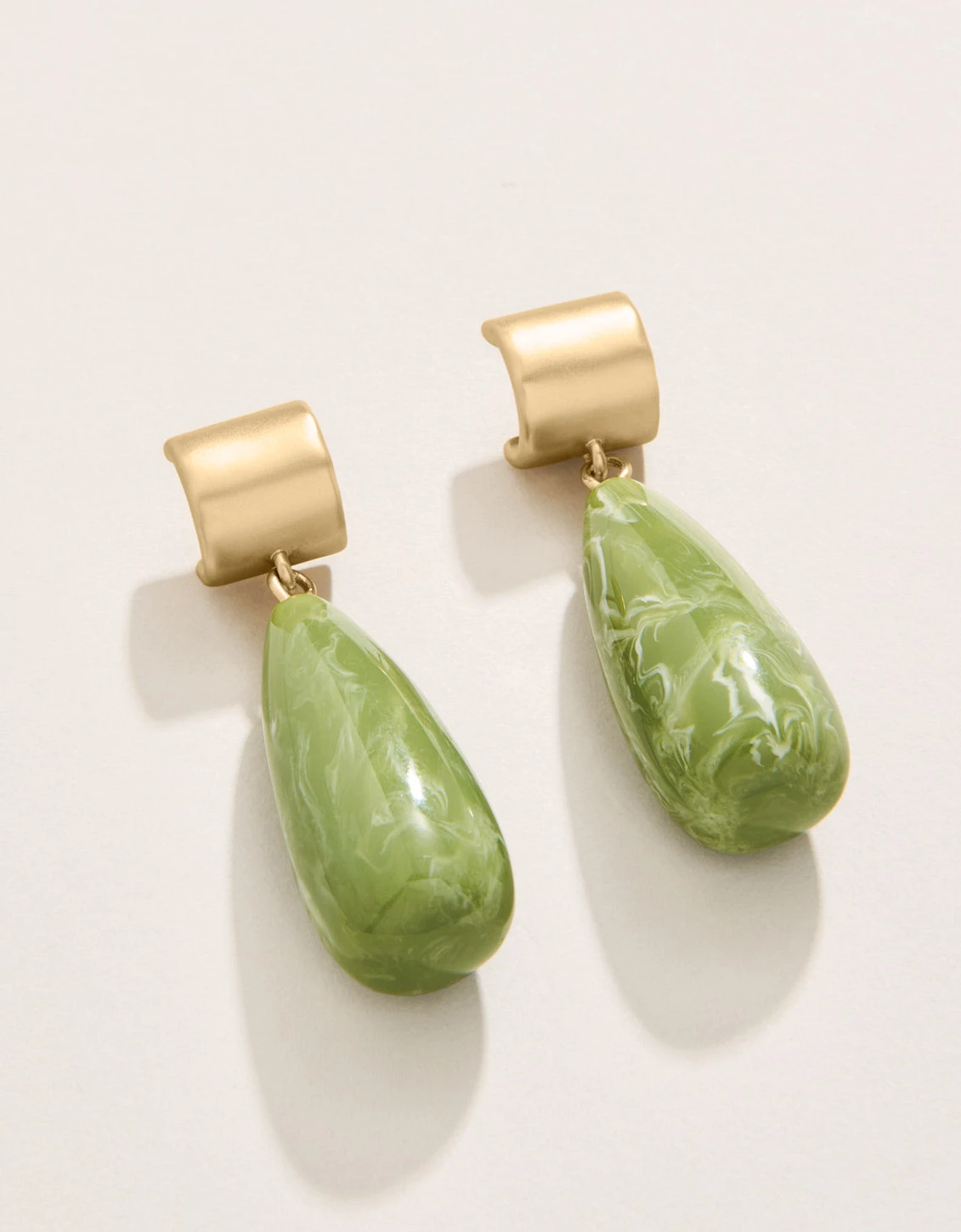 Lightweight marbled resin dew drops drip from 18kt matte gold cuffs for a colorful take on a classic style. Please note: This design features handmade resin and each piece is one-of-a-kind. Colors and patterns may vary slightly from the image shown.