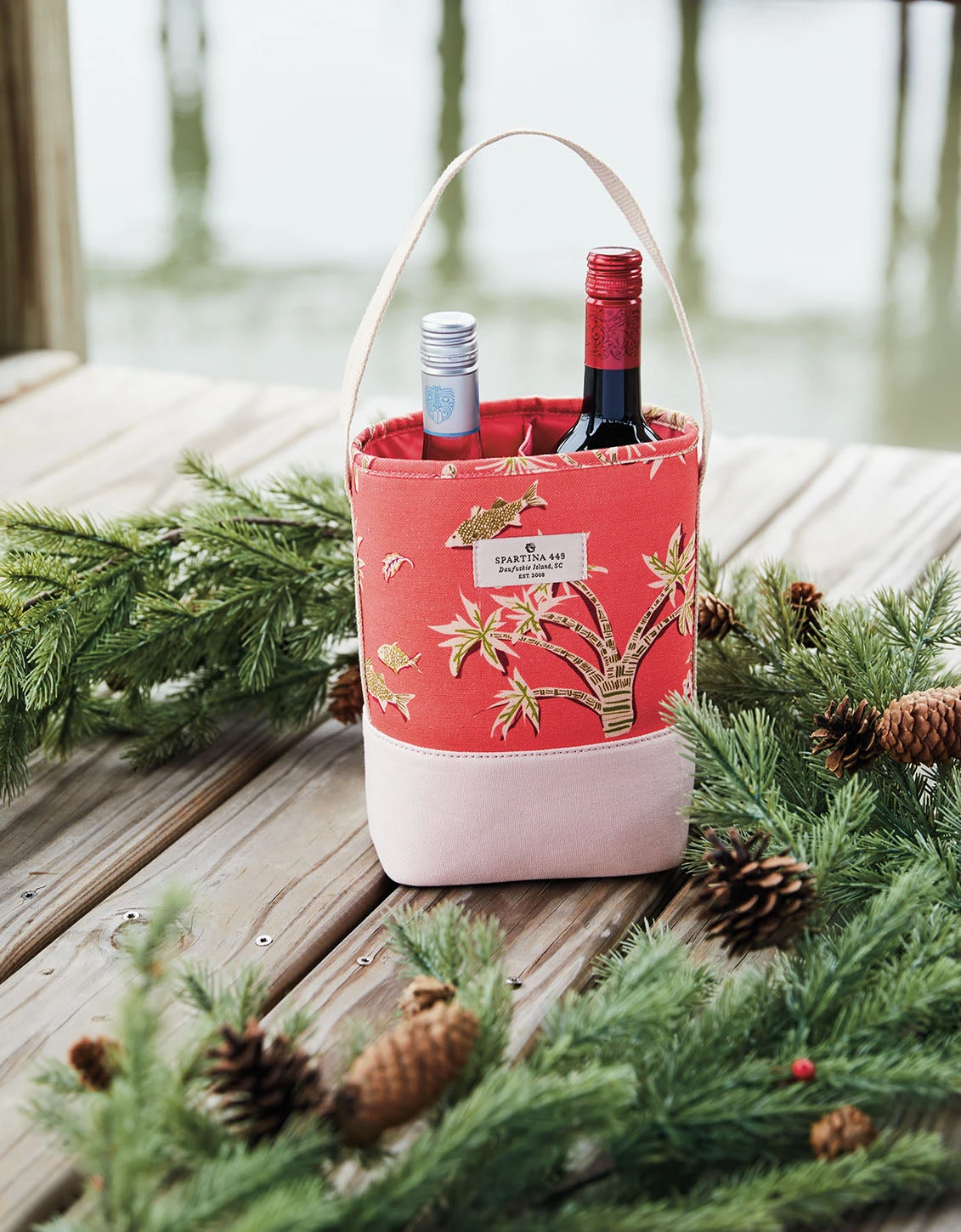Your favorite wine looks even more divine in our caddies! For 2 bottles (or 1 larger bottle), our easy-to-clean cotton and linen Double Wine Caddy includes an adaptable, fold-down divider.