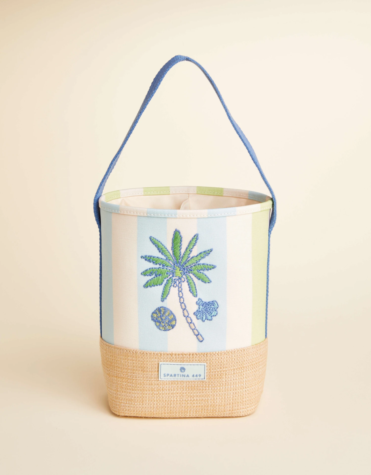 Your favorite wine looks even more divine in our caddies! For 2 bottles (or 1 larger bottle), our embroidered linen and cotton Double Wine Caddy includes an adaptable, fold-down divider and a faux straw bottom.