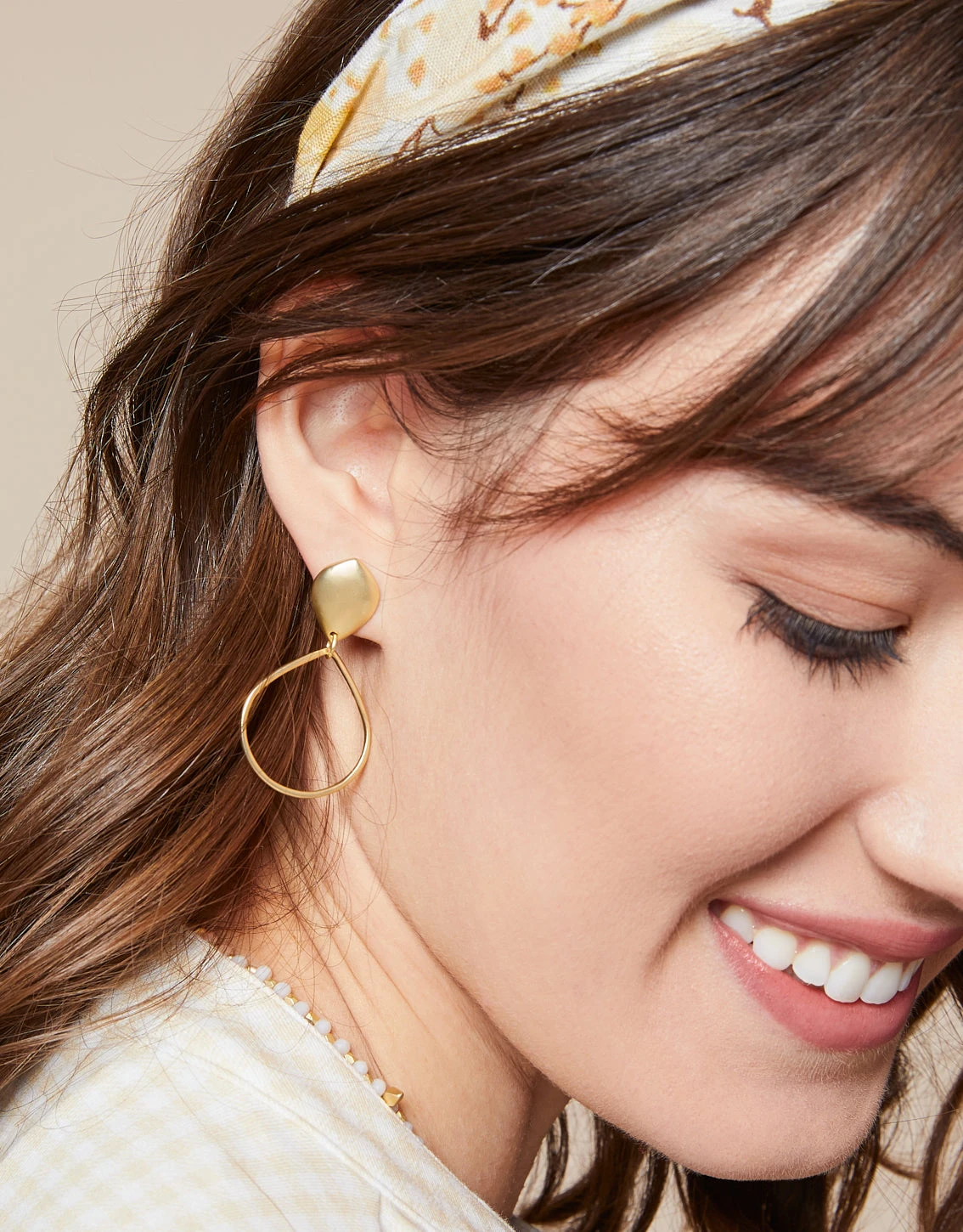 These super lightweight 18kt matte gold plated Droplet Earrings are made to complement any style.