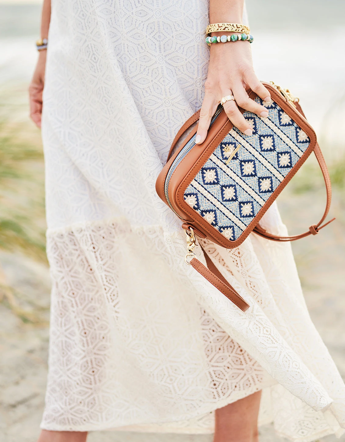 This boxy beauty was made to take you… well, everywhere! With a gorgeous embroidery on a cotton jute blend fabric, our Faye Crossbody has you all squared away with style and functionality featuring card slots, a bill slot, and a zipper pocket!
