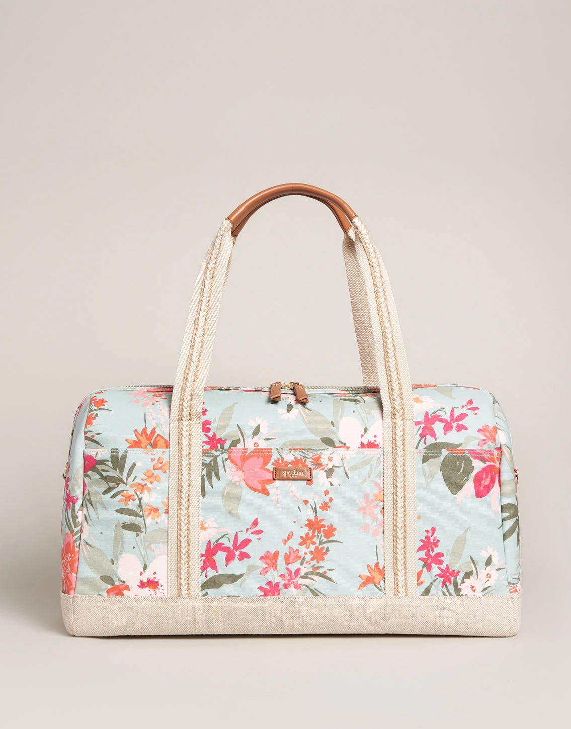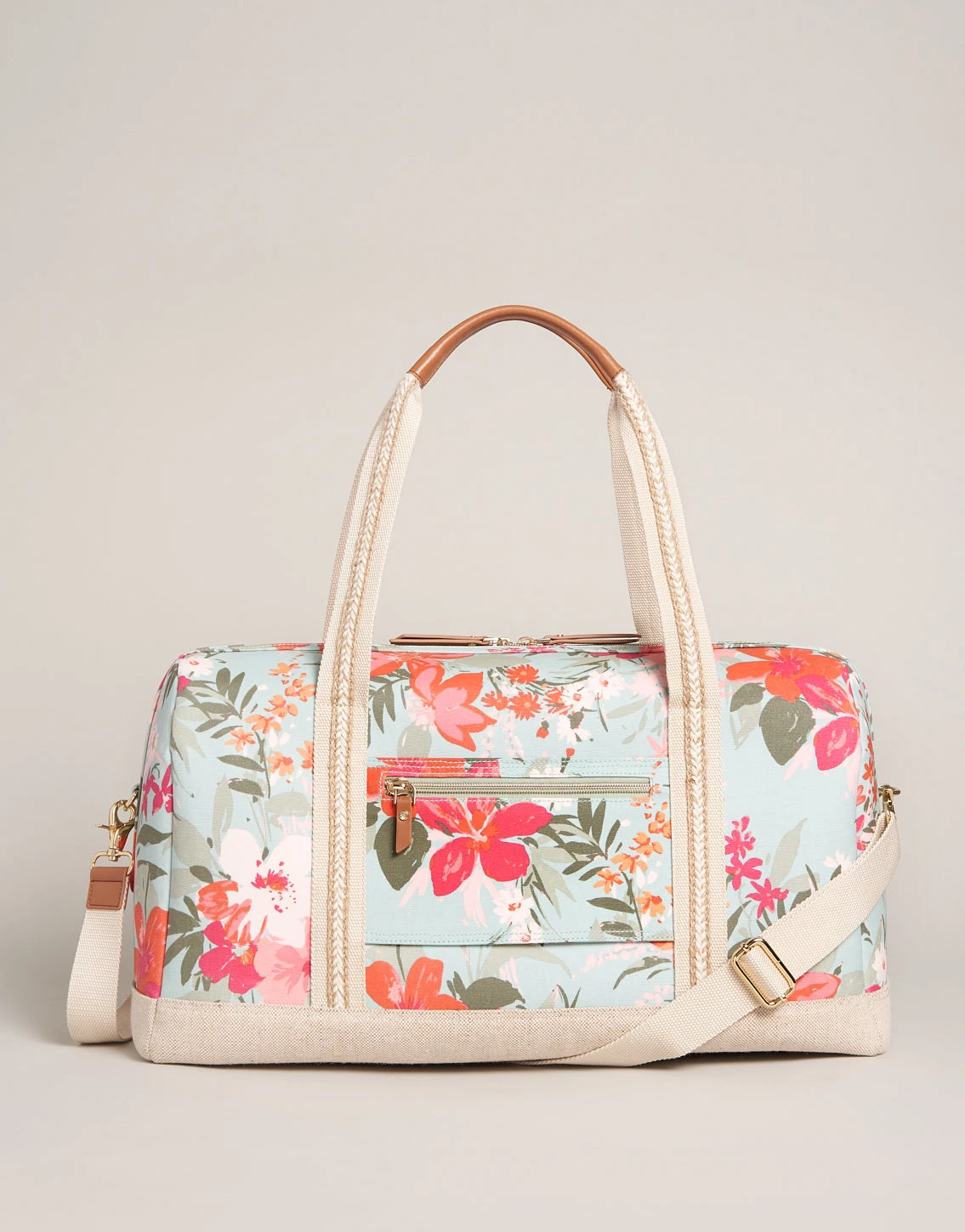 This travel bag is ready to go at a moment’s notice. Spontaneous and spacious, our zip-top Fiesta Duffle is made with floral patterned, easy-to-wipe-clean, splash-proof, stain-resistant, laminated cotton with three deep pockets on the front side. On the backside, this traveler’s-best-friend features a zip pocket and trolley sleeve to easily carry atop your suitcase!