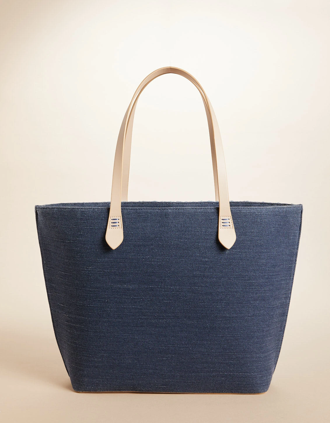 The best party is a beach party and our Fiesta Tote is always ready to come along! Decorated with an embroidered crab on a cotton and jute blend, this tote features a fun, tiered tassel fob and a faux leather bottom base to keep it dry. The custom, crosshatch patterned cotton interior features two slip pockets and one hanging zipper pocket.