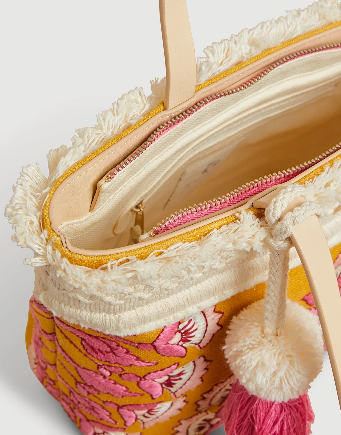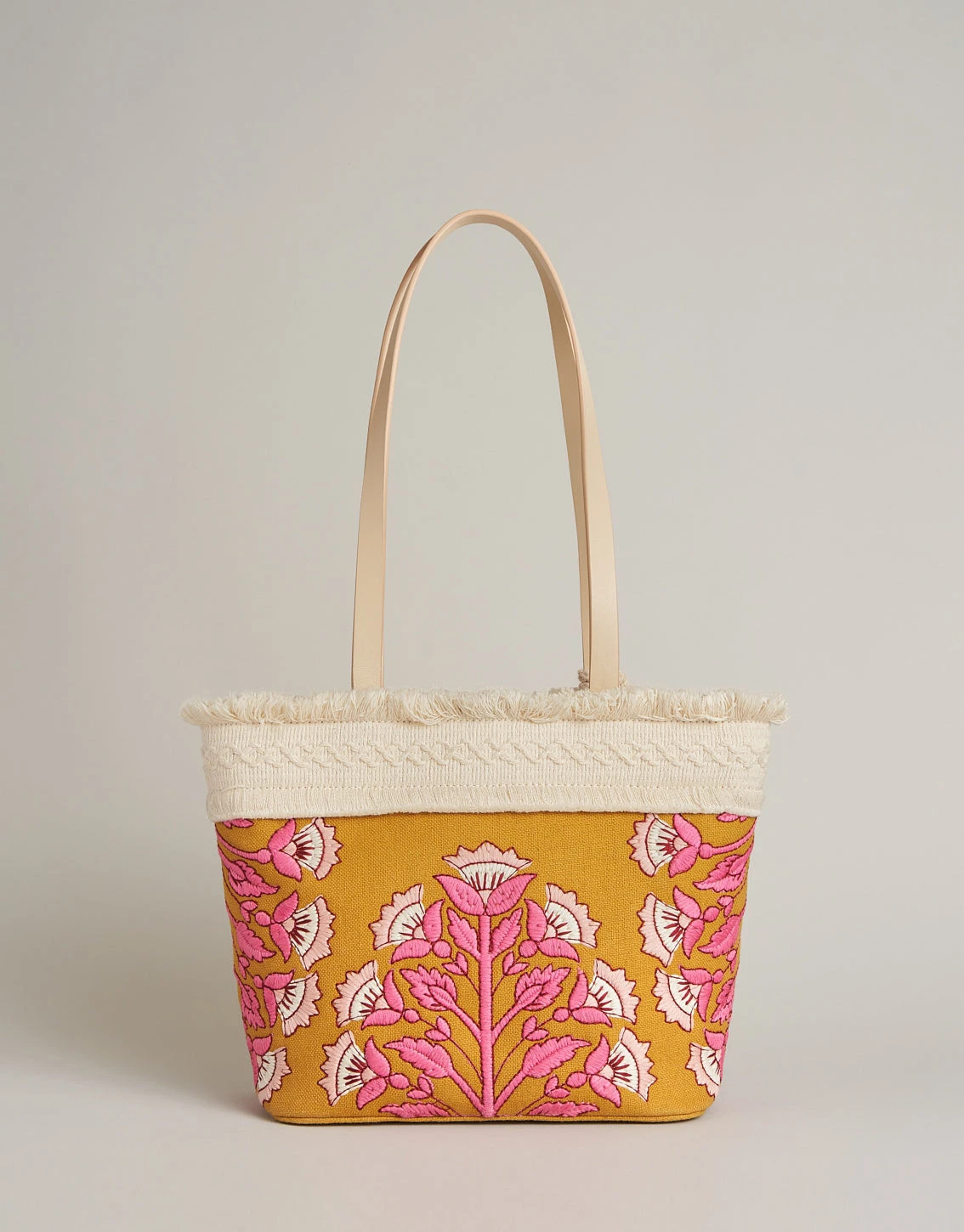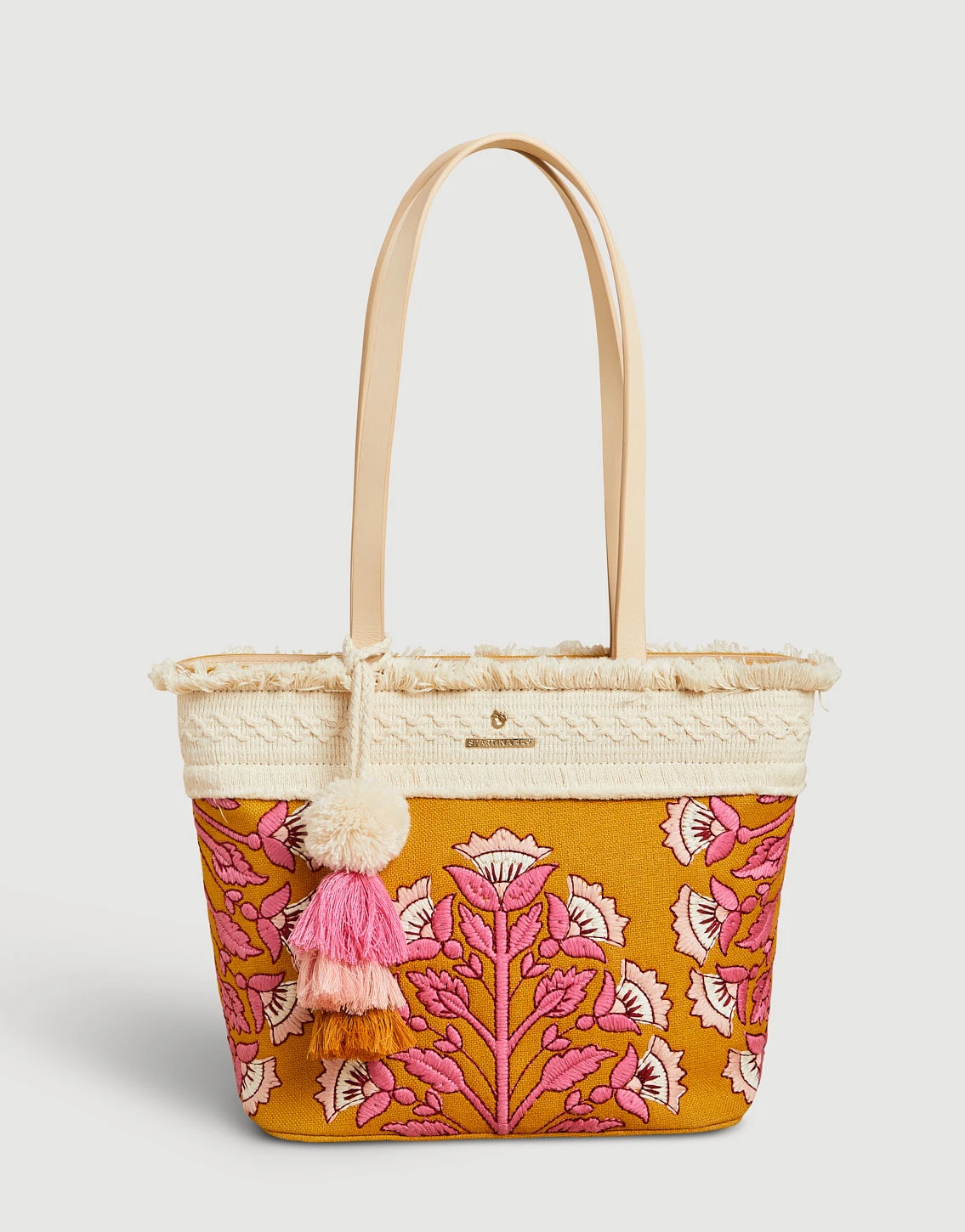 We love it when a mermaid shows off her personality, and this Freeport Tote does just that! With its beautiful, easy-going structure, this leather-strapped beauty has a gorgeous embroidered band front and center, framed by a soft fringe. The top-zip closure will keep all of your valuables in place while the interior linen zip and slip pockets will keep you organized.