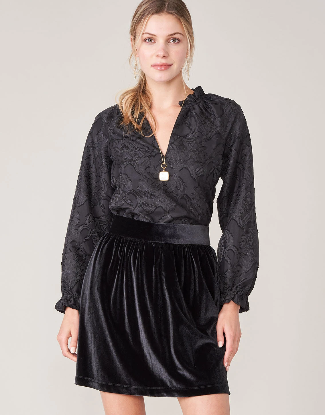 The Gianna Stretch Velvet Skirt is made for ultimate comfort in velvet with just the right amount of stretch. In a luxe black, this mini skirt features an zip closure.