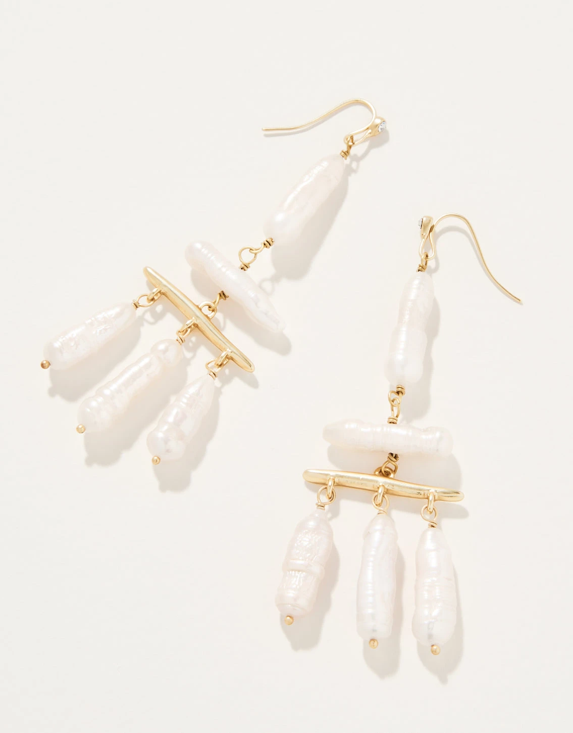 Our flirty Great Hall Pearl Earrings are bursting with glamorous style. These dangle earrings are made with freshwater pearls and 18kt matte gold plating.