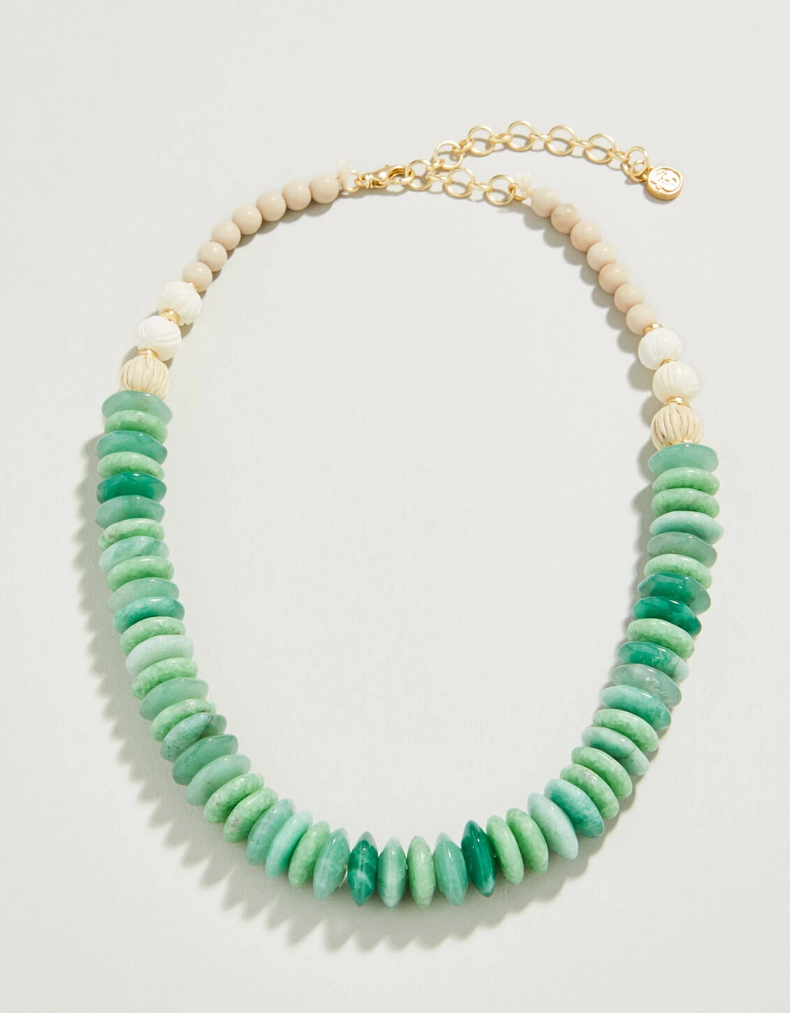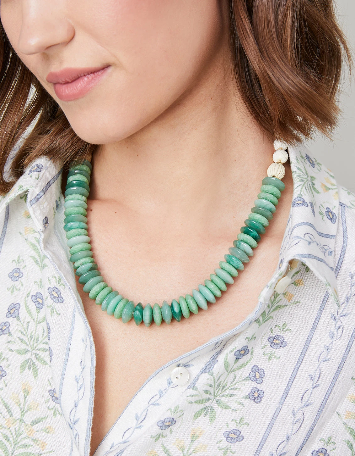 Feel like you’re on vacation every day with our Gaia Beaded Necklace featuring natural green stone beads that remind you of the coast. Please note: This design features natural stones and each piece is one-of-a-kind. Colors and patterns may vary slightly from the image shown.