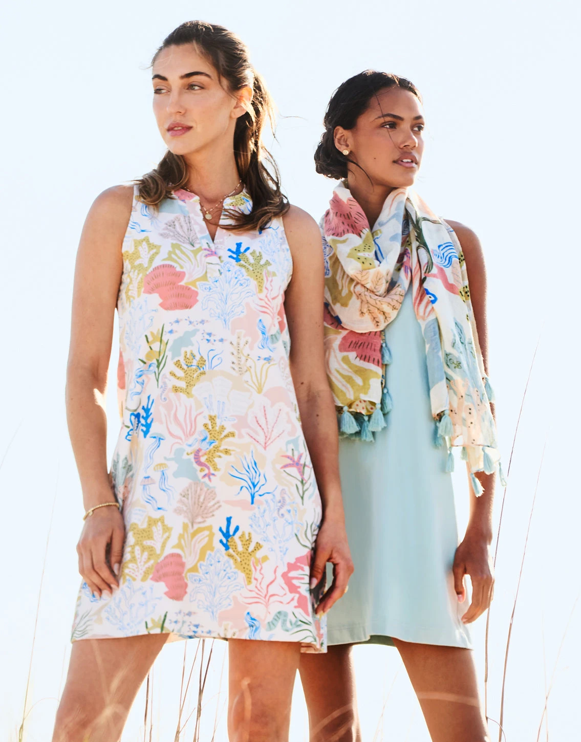 Looking for the perfect summer sun dress? Our sleeveless Hannah Tank Dress ups your summer style game in the easiest way possible. Made in a seafoam mermaid patterned, comfortable jersey fabric, this simple and sophisticated look with contrasting placket feels just as good as it looks.