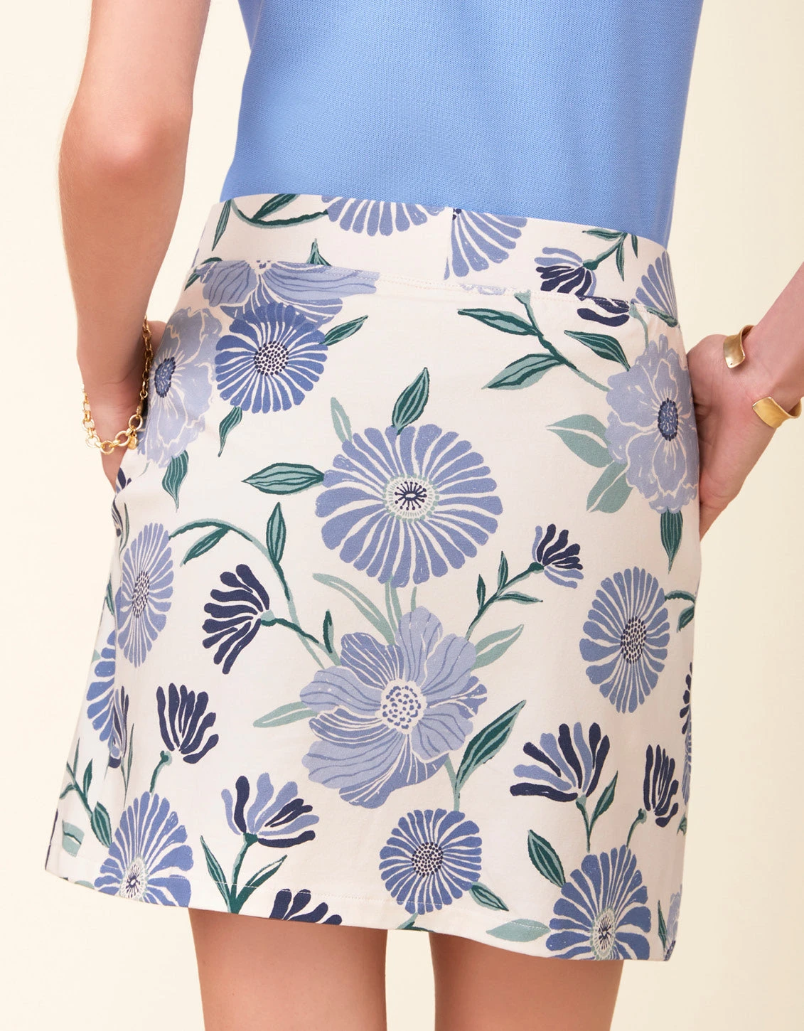 Get the look of a sporty but feminine mini-skirt with all the invisible coverage of a short. Ready to pair with golf shoes, canvas sneakers or your favorite sandals. This blue floral skort stands out. Pair with our Serena Half-Zip Top for all-day comfort on the green or court.