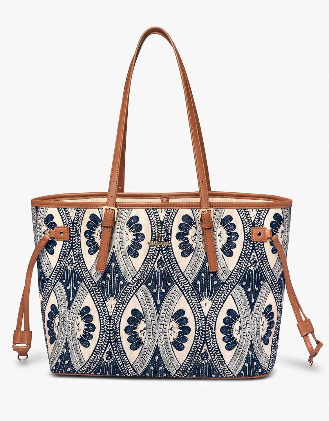 Whether traveling by air, land or sea, this tote will be your favorite new companion. Adjustable side straps allow you to tailor the bag to the size that best suits you. This bag boasts a deep, spacious interior a large zippered pocket on one side and three slip pockets on the other. A beautifully crafted hook closure and signature Spartina mermaid finish the look. Wherever your day takes you, this bag is ready to go!