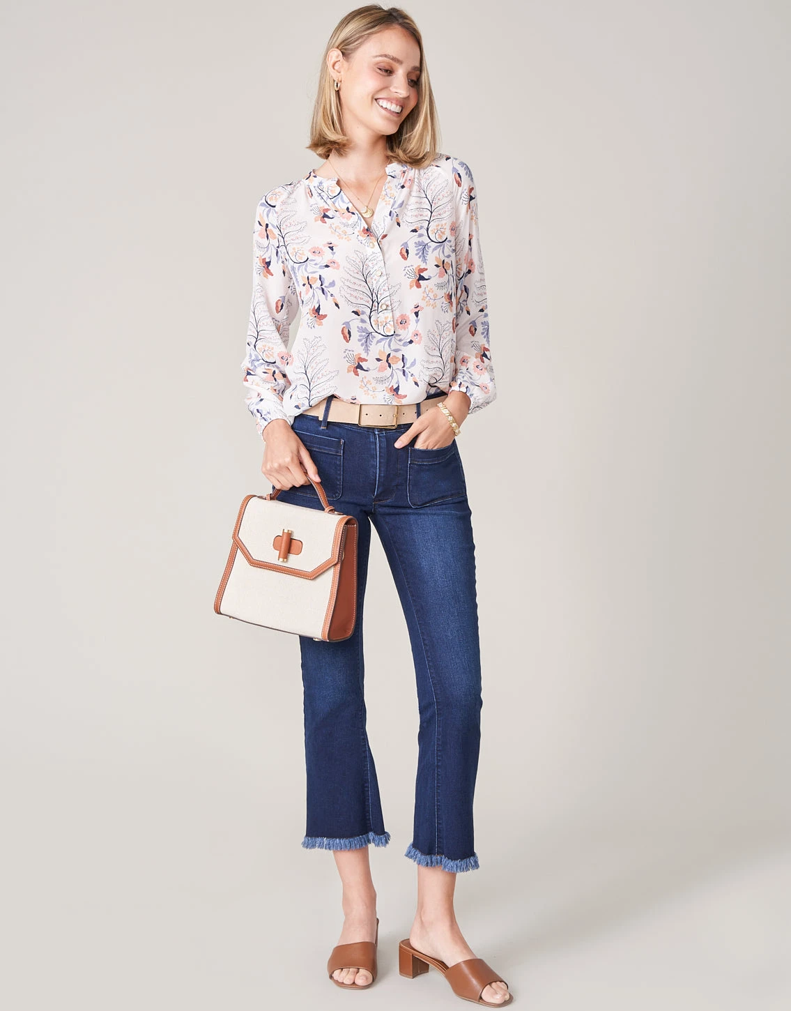 Our high-rise, kick flare Juliette High Rise Jean fits slim through the hip and thigh. Featuring front and back pockets and a hidden smoothing tummy panel, these jeans are made in our super-stretchy denim that softens with wear for all-day comfort. Style with your Spartina tops to give these frayed hem jeans a new look with each wear.