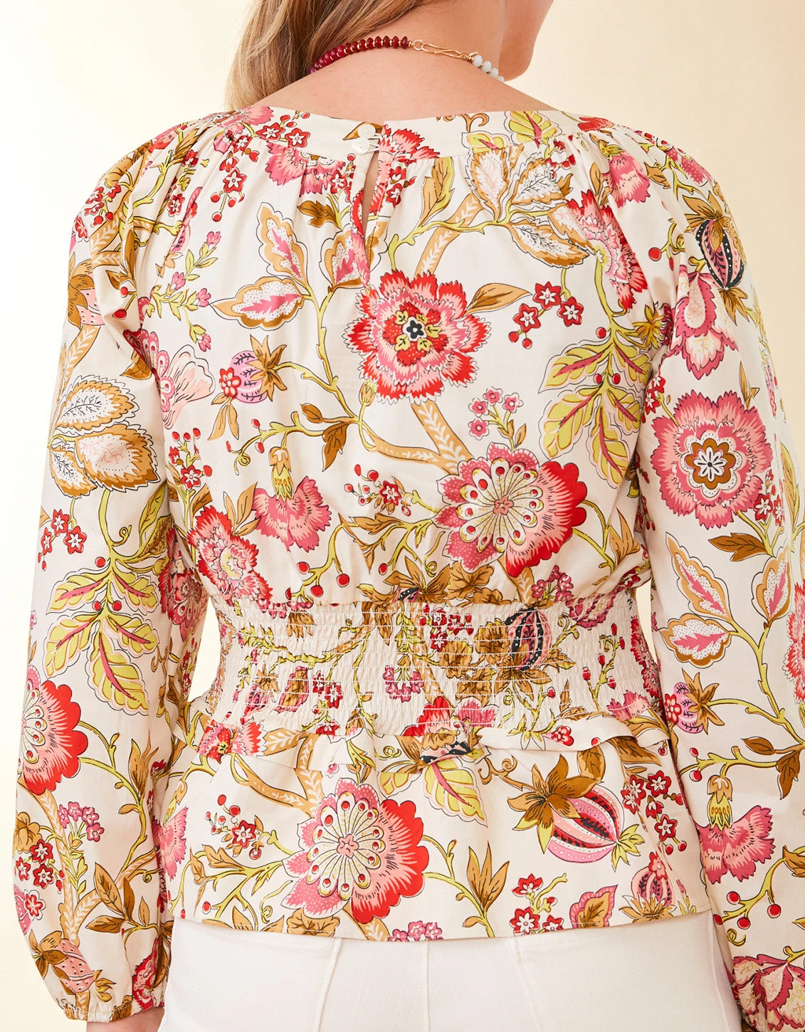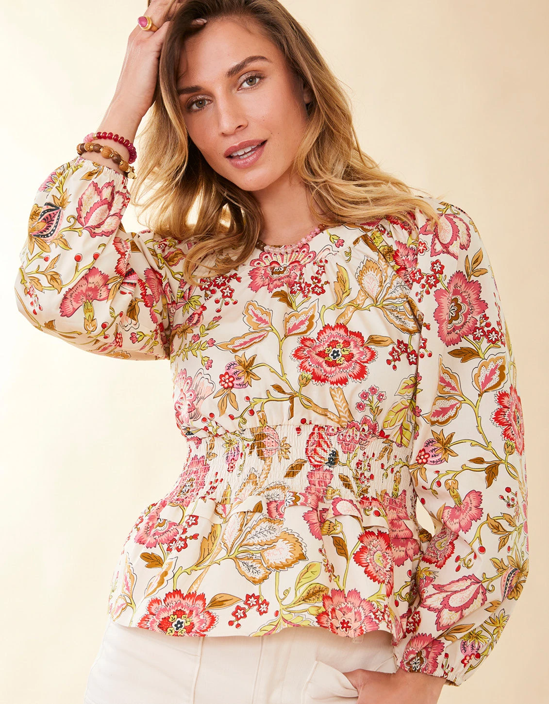 With a cinched waist that complements your shape, our June Peplum Blouse is versatile, fun, and flirty! Pair this Jacobean patterned, long-sleeve, stretch cotton top with our Juliette High Rise Jeans or your favorite Maren Pant.