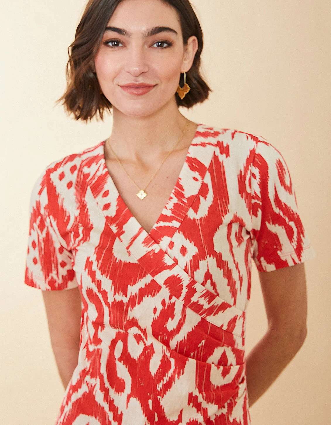 Wrap yourself in style & comfort with our soft, luxe Peruvian cotton blend short sleeve Junetta Midi Dress. When it comes to style, Junetta is where comfort meets luxe with her V-neckline and straight fit. She’s ruched at the side to work with her faux-wrapped style to complement your shape and features a side slit for flirty flair.