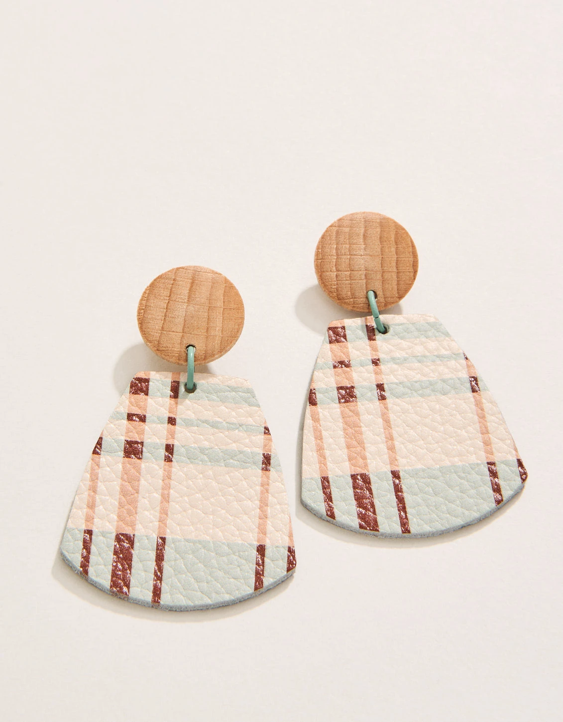 Add lightweight volume and color to any look with our plaid Kalalanta Earrings. These unique beauties feature leather, wood posts, and textured 18kt matte gold plating.