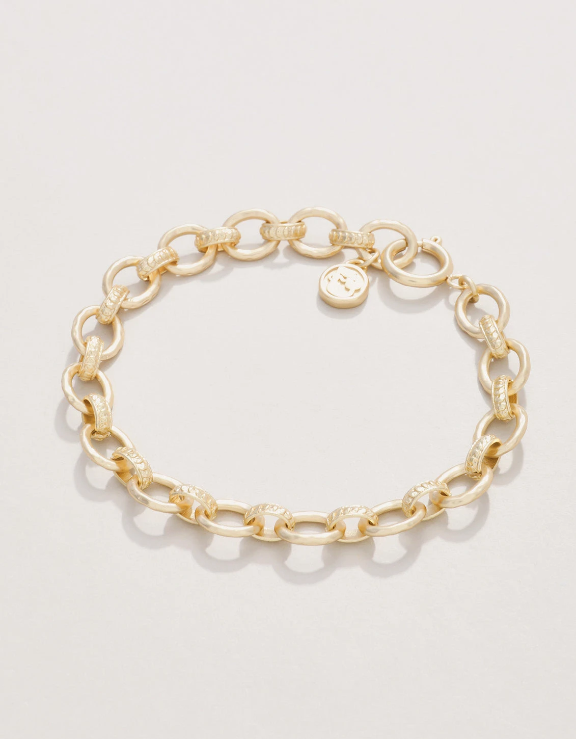 Made in 18kt matte gold plating, this classic chain bracelet is the perfect addition to any outfit. Pair it with bold bangles or stretch bracelets for this season’s must have layered look.