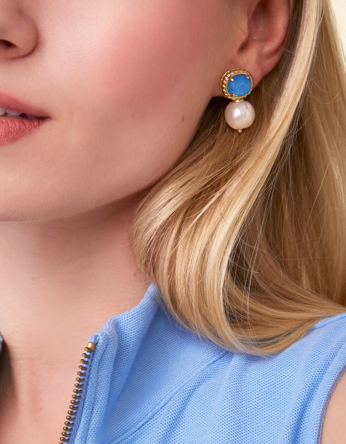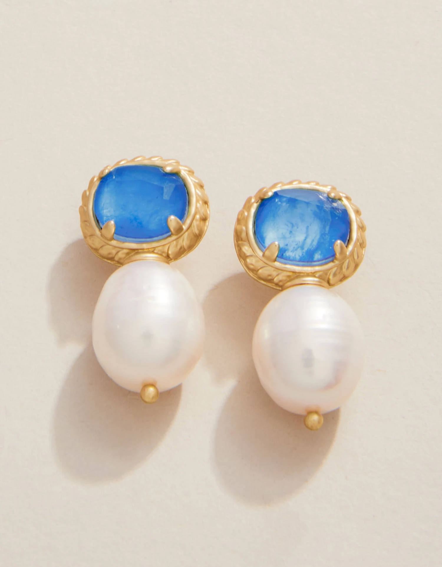 Pearls are the heart of the ocean, the Lowcountry, southern style and our Karina Pearl Stud Earrings embody just that. Stunning blue stones framed in 18kt matte gold plating combined with shimmering freshwater pearls make these sea-worthy earrings.
