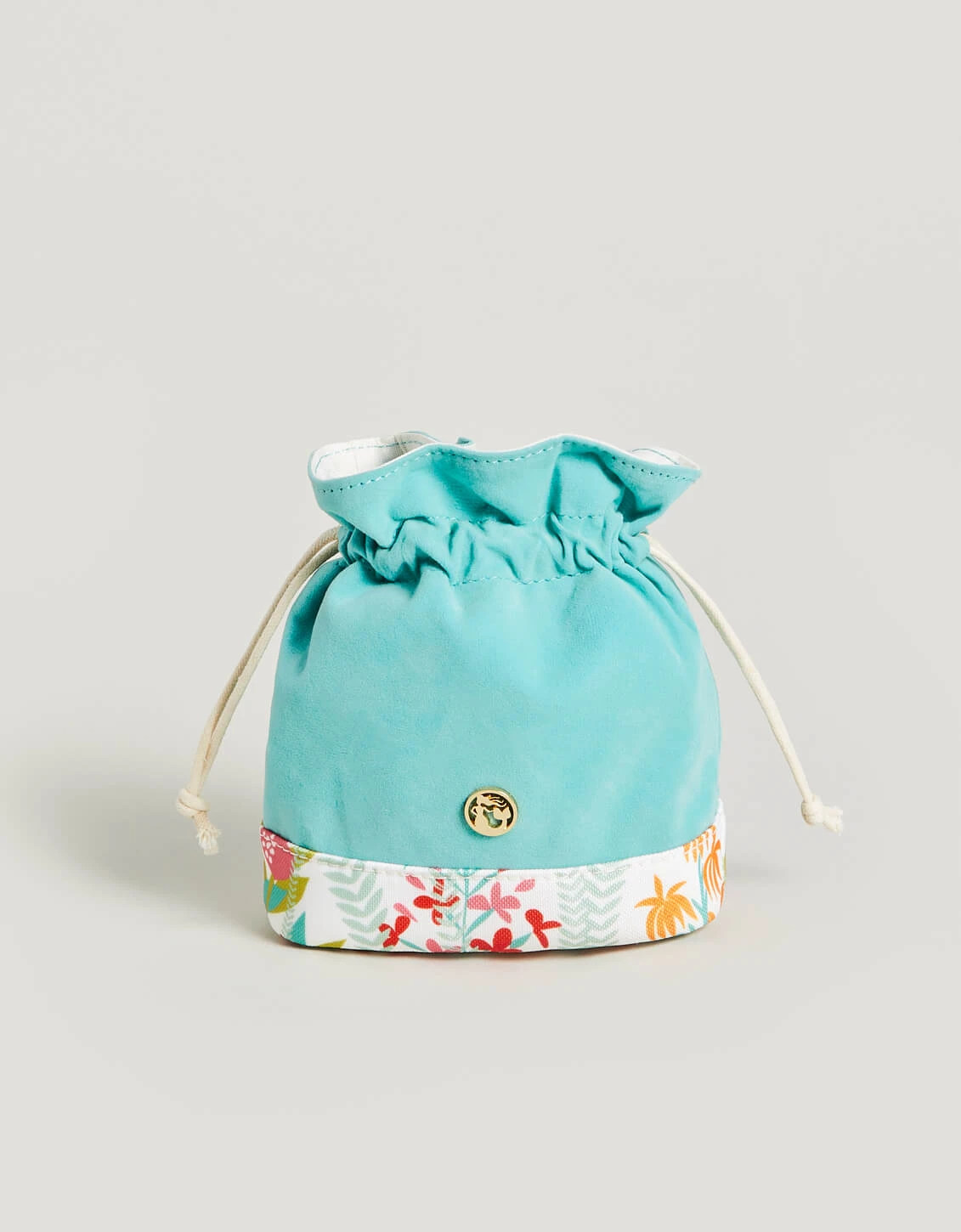 Your prettiest things deserve a pretty pouch and this one is a jewel! Our golden embroidered, faux suede pouch has a cinch top and sleek nylon interior, providing perfect protection for your keepsakes.