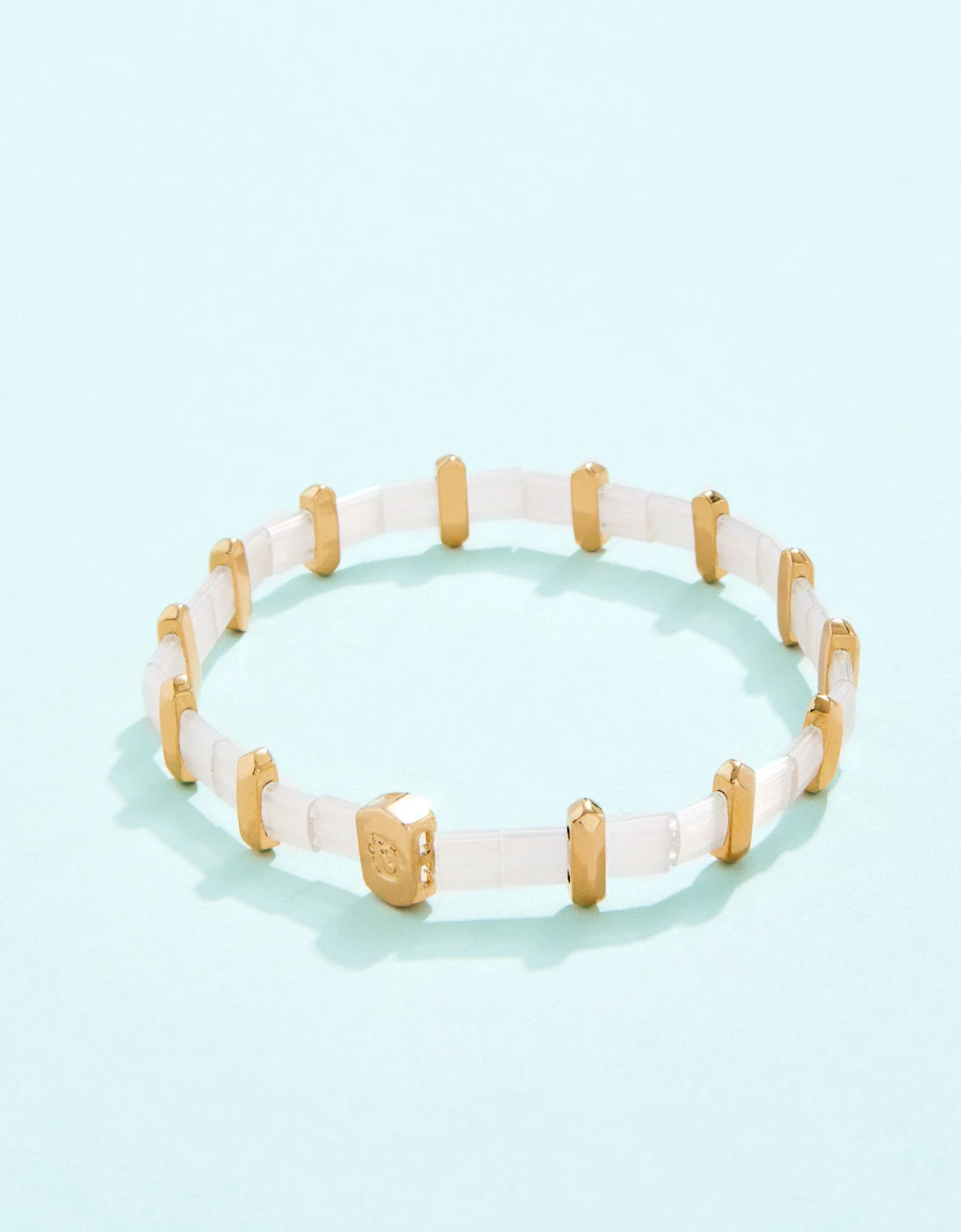 This bracelet is vacation-ready, but let’s face it: we want to be on vacation every day! Designed to shine through everyday wear, exercise, showers and a summer at the beach in tarnish free & water resistant 14kt gold vacuum plated beads mixed with glass beads. You will never have to take it off. Great for stacking or mixing and matching.