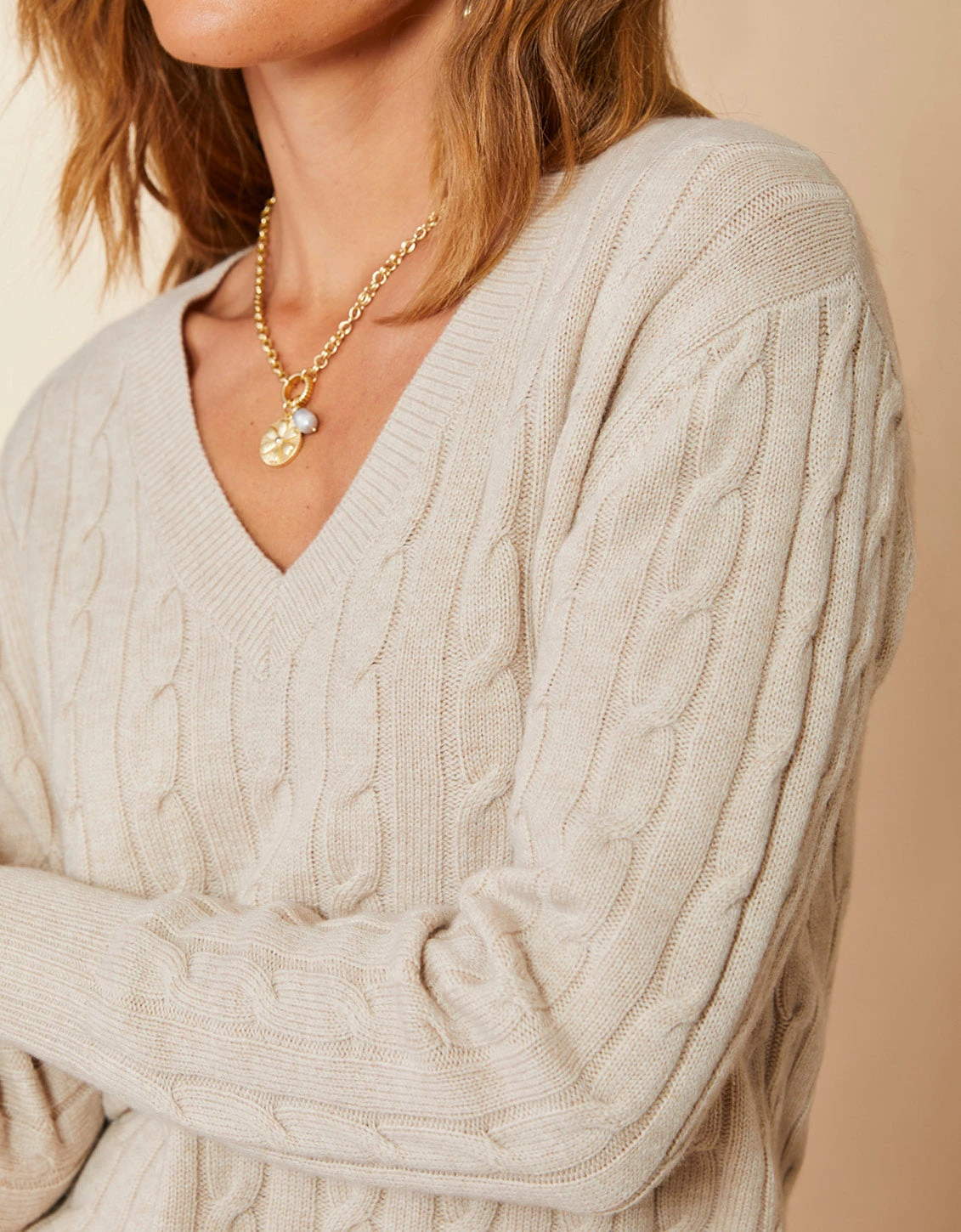 Chilly weather essential: our Kit V-neck Sweater! Made of soft, comfortable wool and cashmere blend with long sleeves and an oversized fit, this pullover sweater was made for going from snuggly mornings on the front porch swing to cool afternoons taking in all your city’s sites.