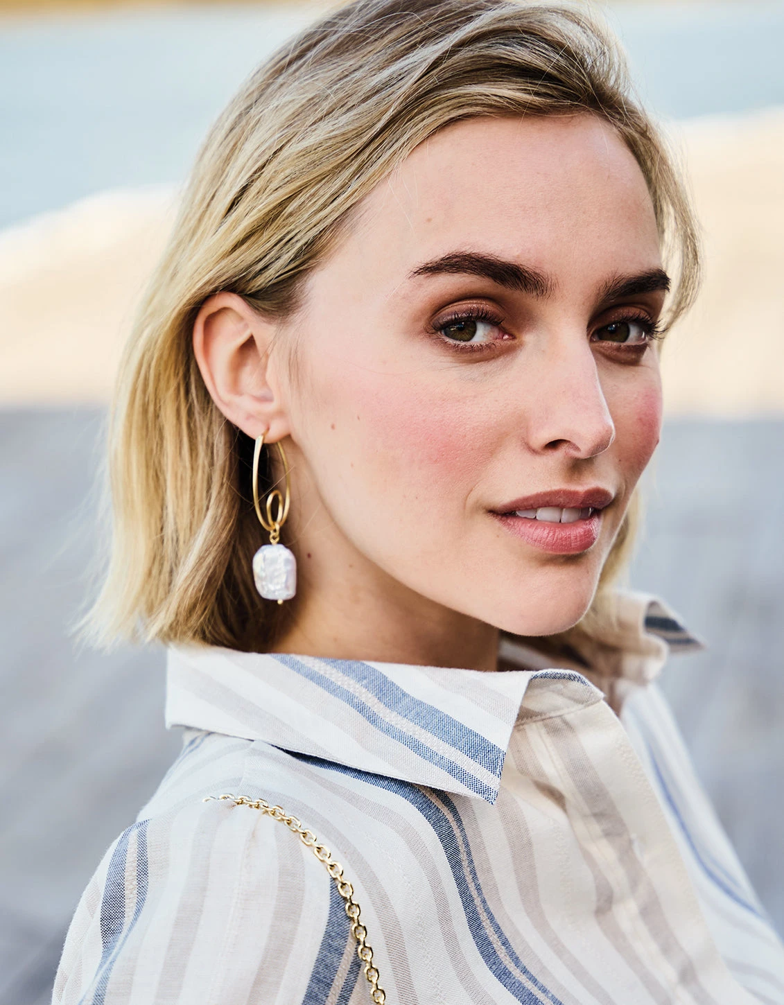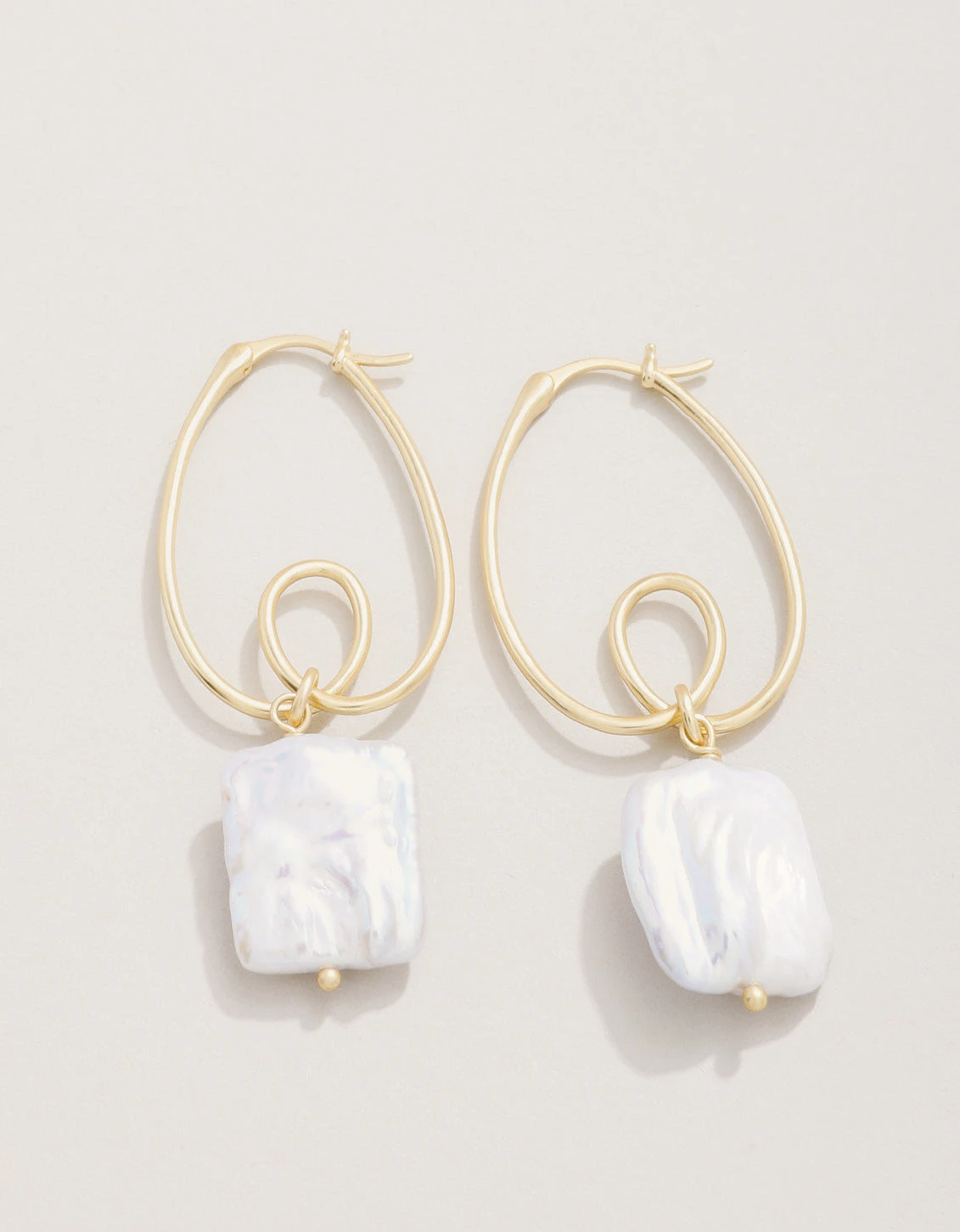 Bring on the happy, bright days of Spring with our Loopy Hoop Earrings, bold loops and a freshwater pearl pendant dangling from your ear in 18kt matte gold plating.