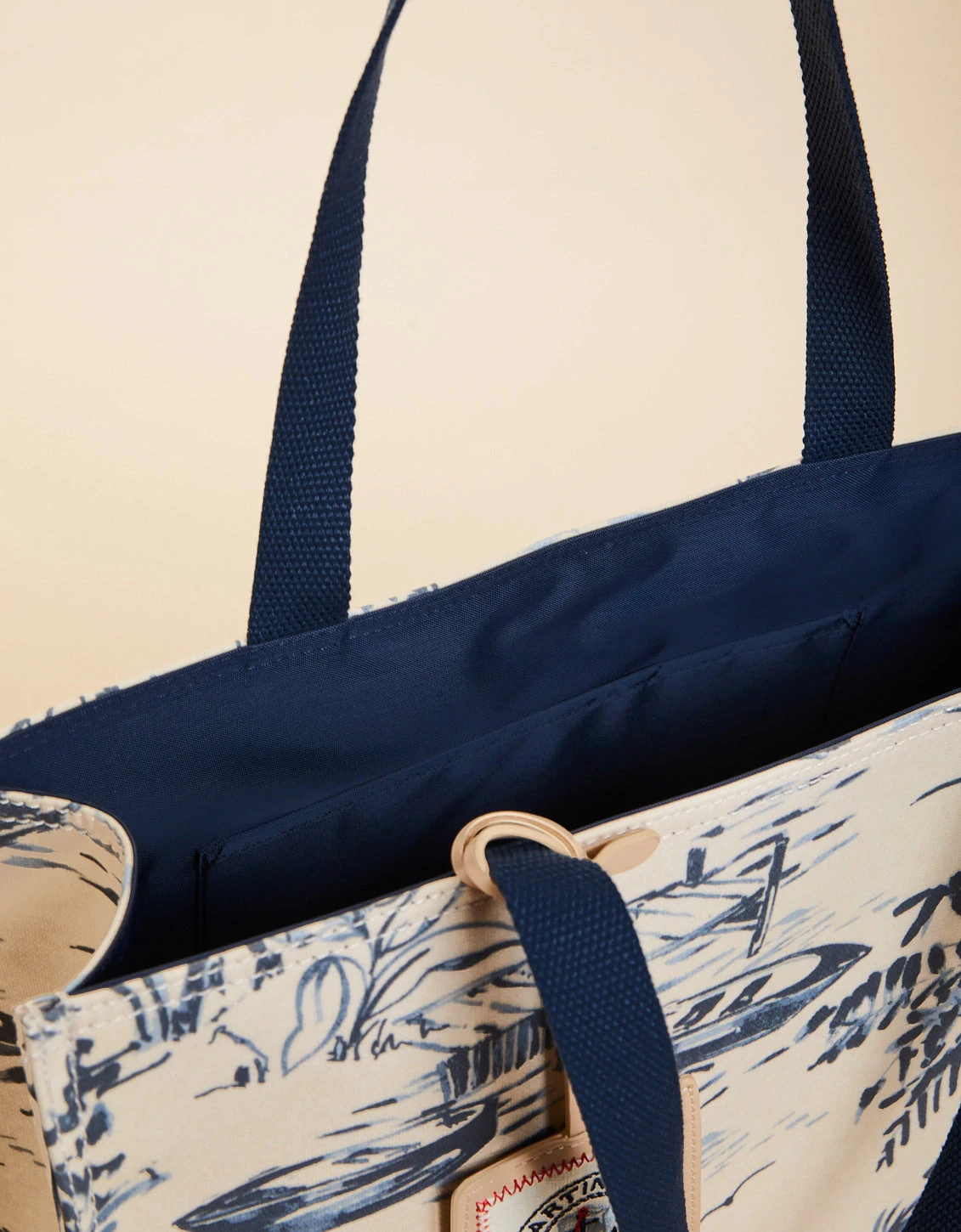 A year-round wonder, our Shopper Tote is made of durable, easy-to-clean material in our popular Daise Seascape print. Throw the thick, cotton-webbed straps over your shoulder and head to the market or beach with your goodies stowed away in the roomy interior, 2 slip pockets, and a zipper pocket.