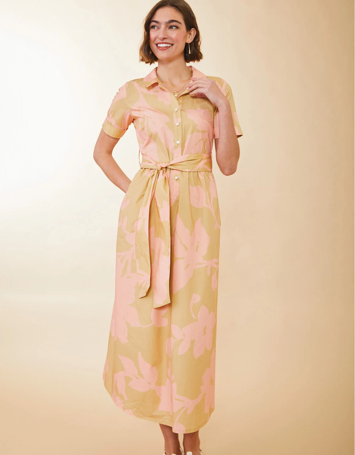 You’ll never have to sacrifice style for comfort in our comfortable stretch cotton Maryam Shirt Dress. This short-sleeved, midi-length dress will be your new wardrobe favorite with front summarys, 2 hidden side seam pockets, and a tie waist belt.