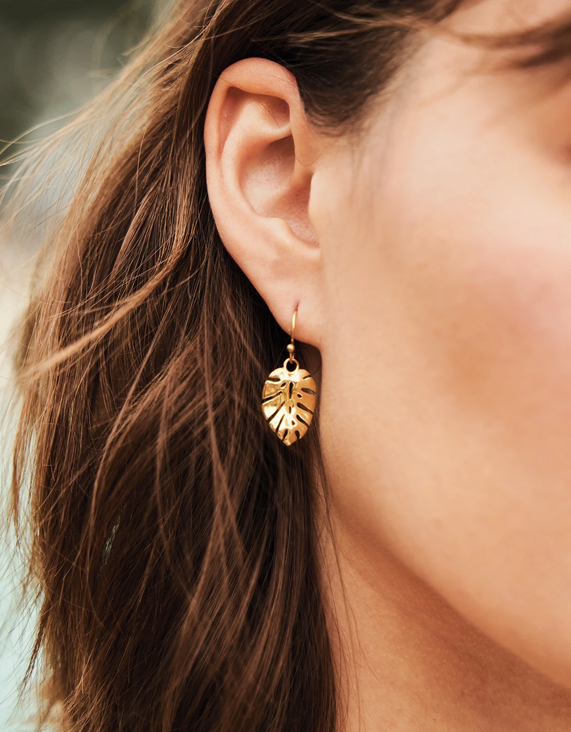 Did someone say tropical vacation? These Monstera Leaf Earrings will make you feel as though you are on a tropical island everyday. Designed to shine through everyday wear, exercise, showers and a summer at the beach in tarnish free 14kt gold vacuum plating.