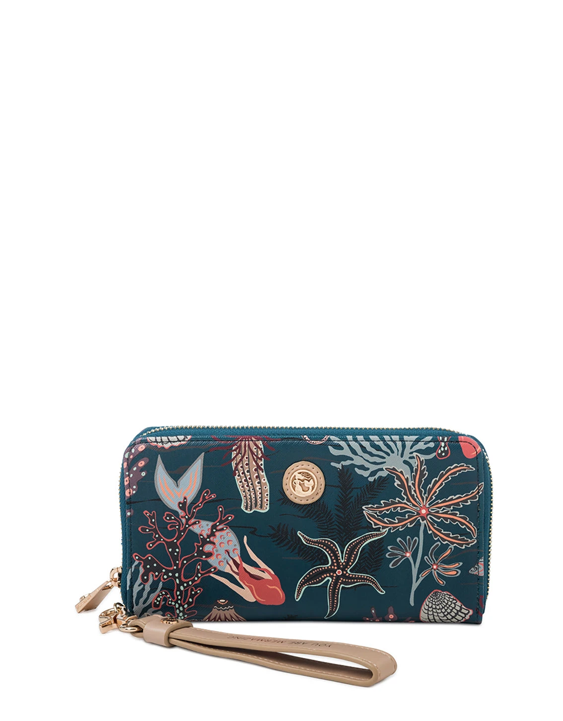 The Mystic Mermaid Wrist Wallet is perfect for quick runs to the store or weekends flirting around town. On its exterior, our textured vinyl shines, accented by our detachable, faux leather strap (emblazoned with “You Are Mermazing”) and an exterior zip pocket. Inside, you’ll find our custom, triton pattern, 12 card slots, 2 bill slots and a zip pocket to keep your essentials safe and sound.