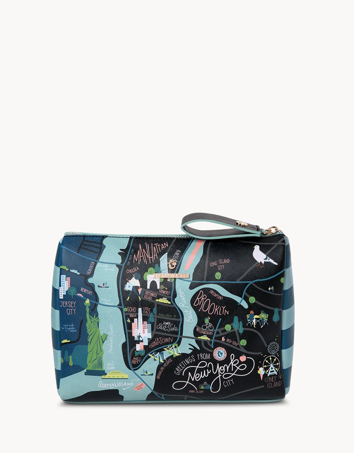 Take your daily essentials on a trip to your favorite destination from inside our Greetings From Carry-all Case, a sublimely simple vinyl (a.k.a washable) zippered pouch that can stow shadows and shine, lotions and potions. Pop into a tote for the daily commute or into your luggage for that dream vacation.