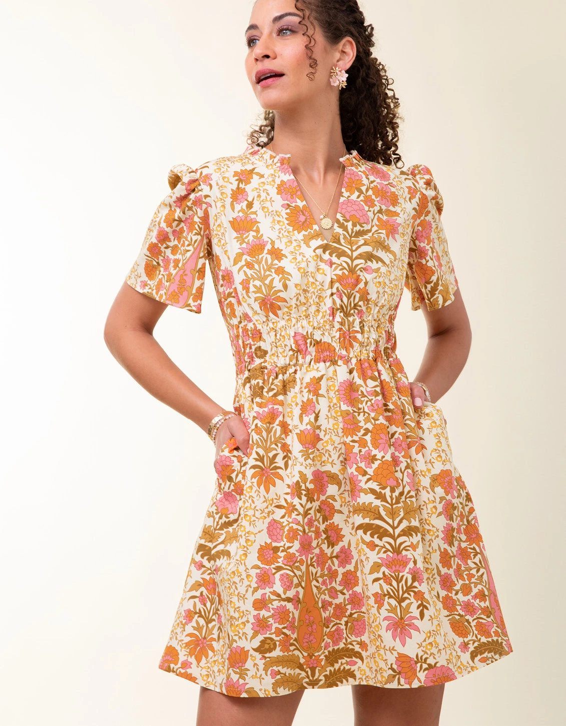 Our stretch cotton Olivia Poplin Dress is your one-stop shop for warm-weather style. With a split neckline, ruffle trim, flounce sleeves, she’s a wearable nod to chic, feminine tailoring. The double cinched waist subtly highlights your shape, while the McAllister Paisley pattern adds an earthy, floral touch. Finished with side seam pockets, the Olivia is a favorite you’ll reach for again and again.