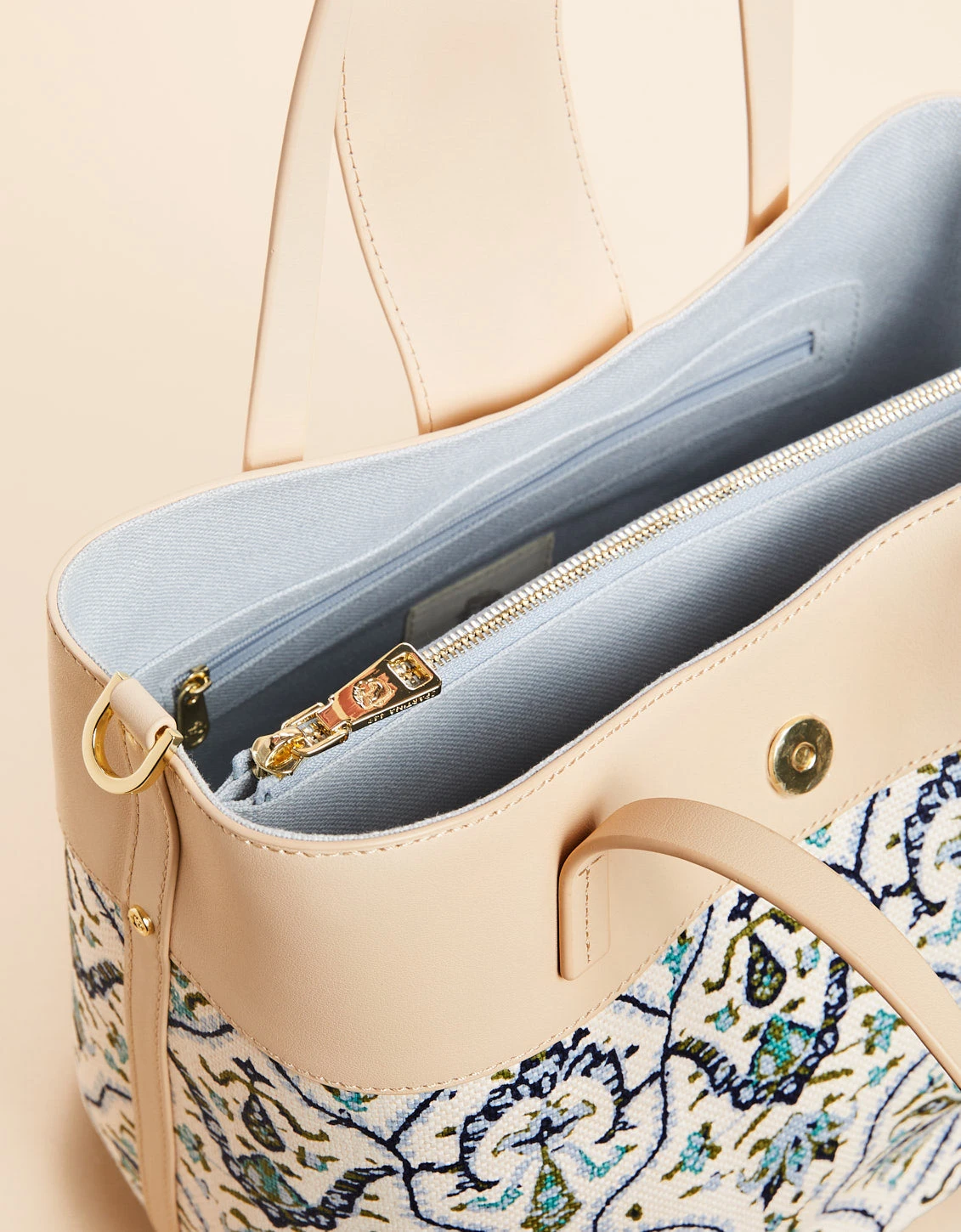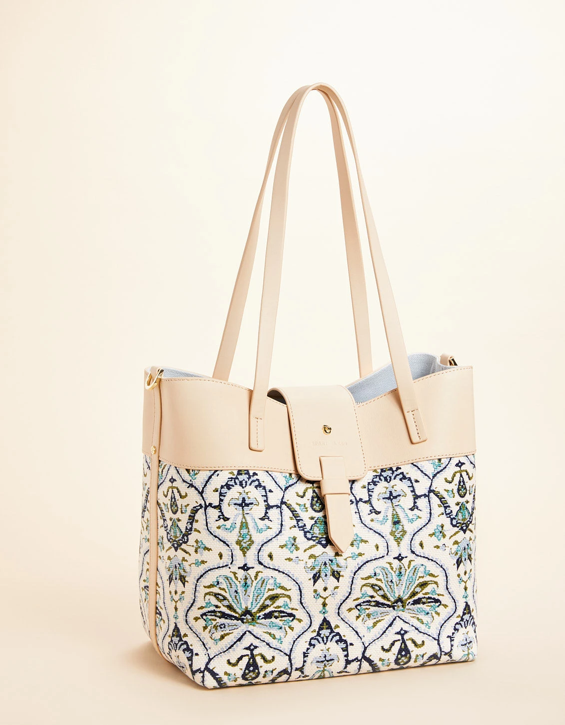 Graciously welcoming all your essentials, the roomy Olivia Tote in our signature linen and Napa leather will be your go-to bag! The 2 outside compartments pull together with a faux belt magnetic closure, making it easy to quickly grab your go-to items, while the middle zipper compartment offers security for precious essentials.