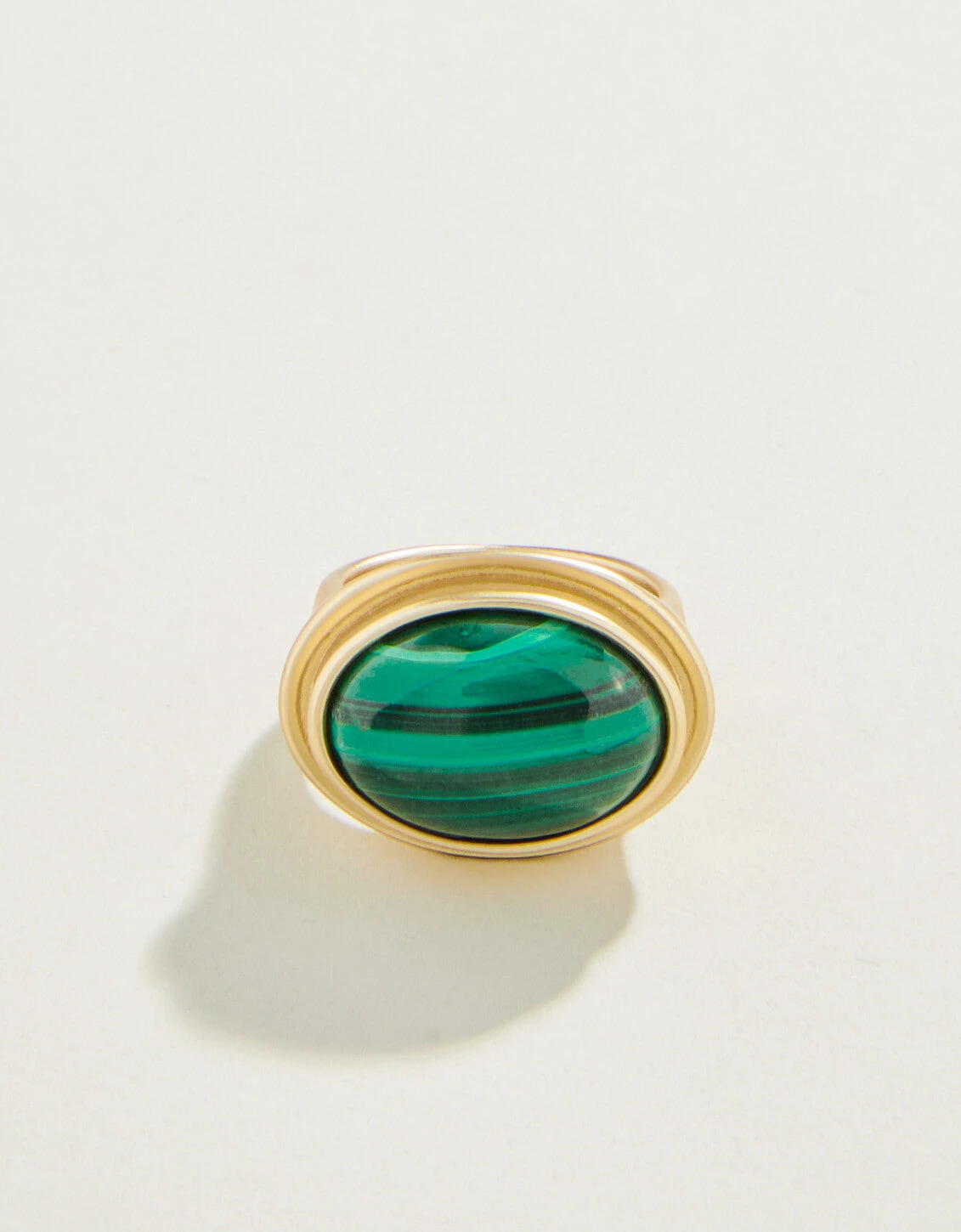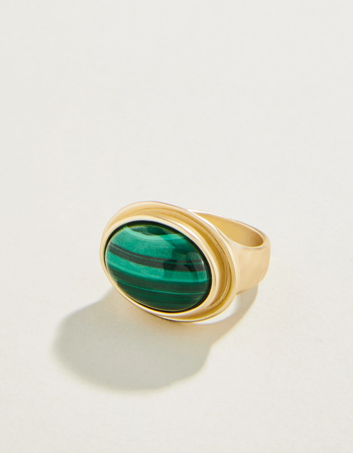 Our statement making Oval Stone Ring, with a natural green malachite stone and 18kt matte gold plating, adds personality to every gesture, and we think our manicures have never looked better! Please note: This design features natural stones and each piece is one-of-a-kind. Colors and patterns may vary slightly from the image shown.