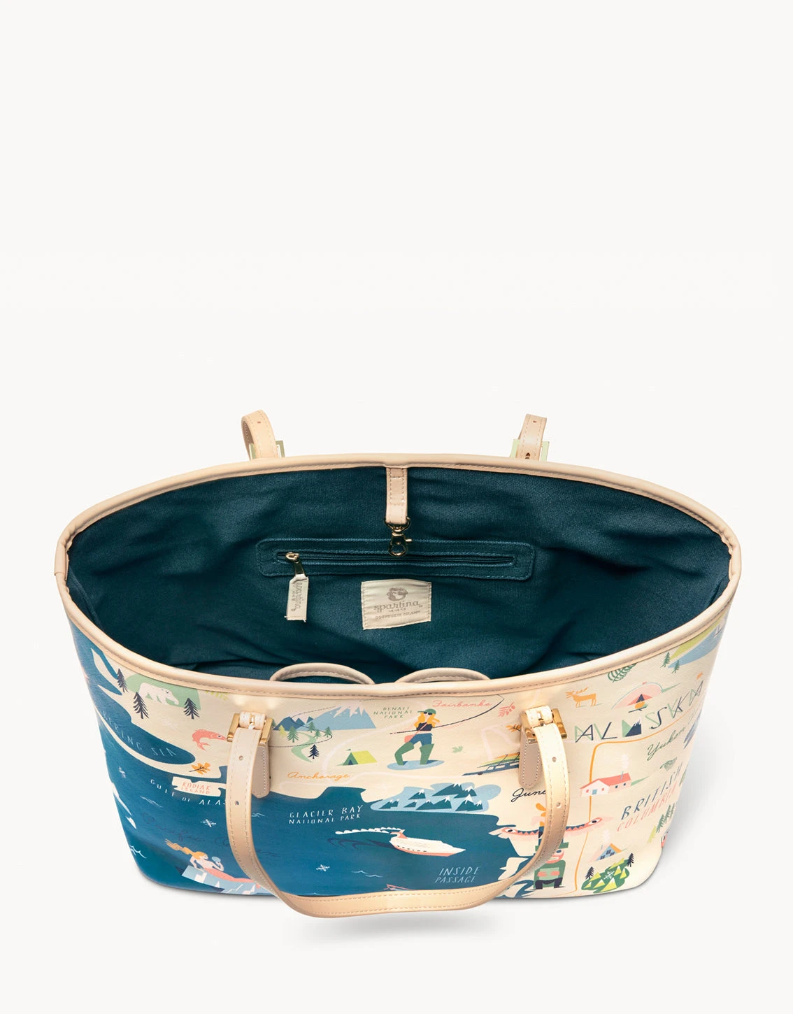 This tote with our signature golden Spartina logo is perfect for days of adventure shopping around town or relaxing on the beach. It features an open top design with a simple lobster claw closure, roomy interior plus three slip pockets and one zip pocket on the inside. The cotton canvas lining is brightly colored for fun, yet is also sturdy.