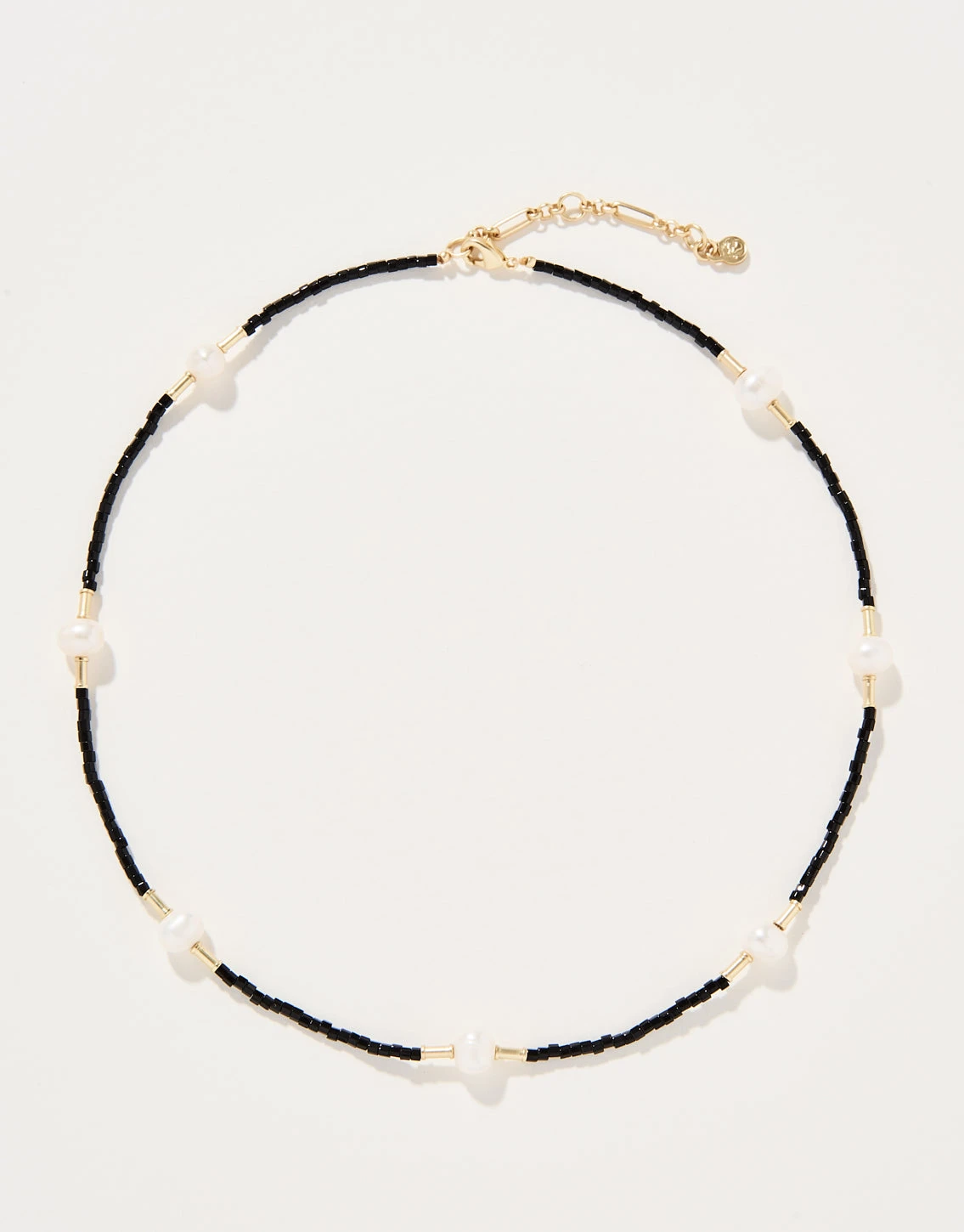 Our Pearl Bitty Bead Necklace captures that timeless vintage look in beautiful freshwater pearls and the deep hues of its glass and metal beads. Set in 18kt matte gold plating, you’ll reach for this piece over and over again.