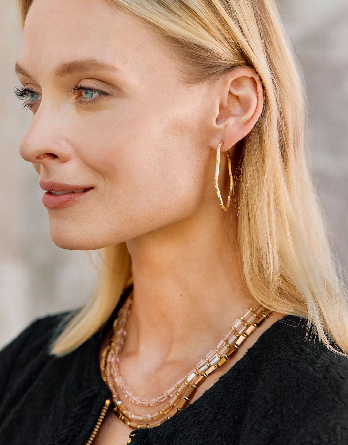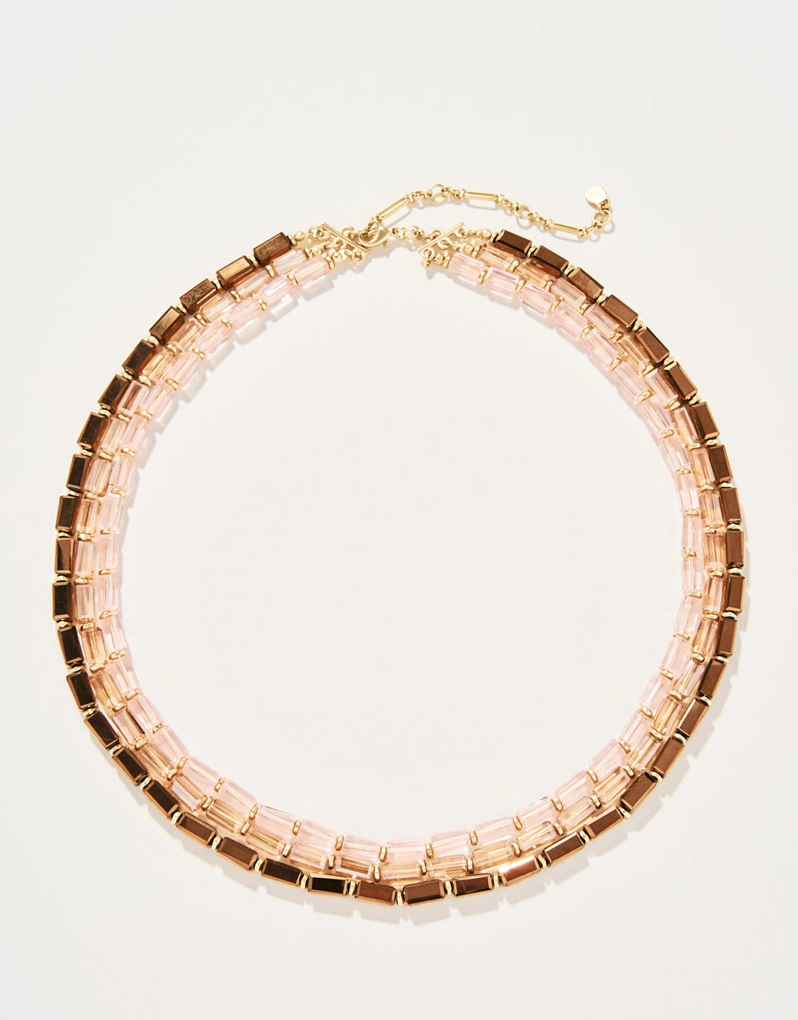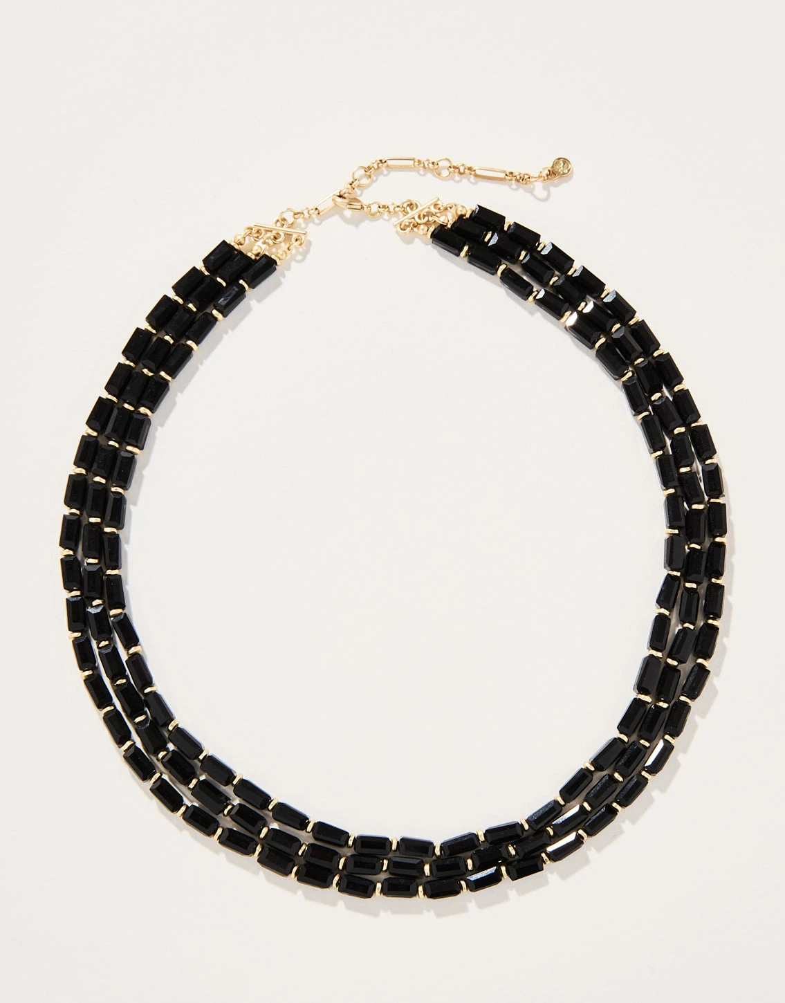 Our René Necklace captures that timeless vintage look in a beautiful deep hue of faceted glass beads. In 18kt matte gold plating, you’ll reach for this piece over and over again.