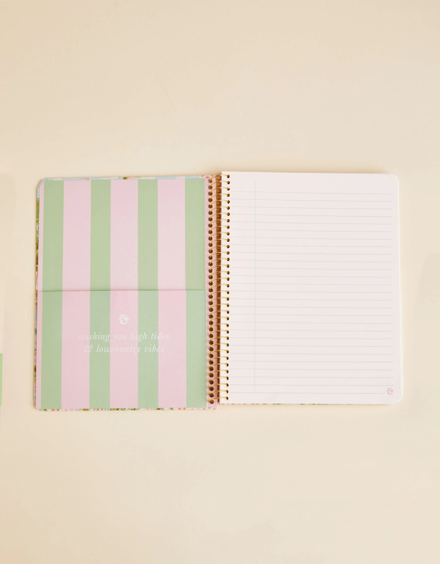 Our Coastal Dreams Ruled Spiral Notebook features a hardback cover with a golden spiral. Includes a handy slip pocket inside the front cover. The perfect place to jot down ideas for your next vacation!