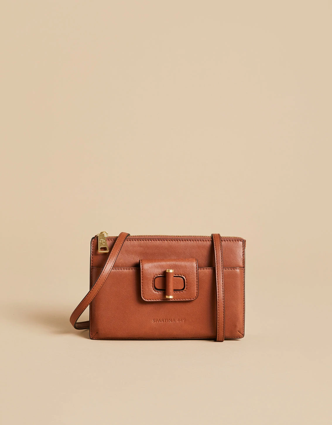 Our super-soft, premium top grain calf leather Lindsey Phone Crossbody is all zipped up and ready to a-go-go. How so? Slip your phone into the front pocket under the matte gold, turnkey closure then neatly carry up to 18 cards, I.D., cash or receipts, keys and lip color inside. And this tiny totable attaches to a thin crossbody strap, making you a master of minimalism.